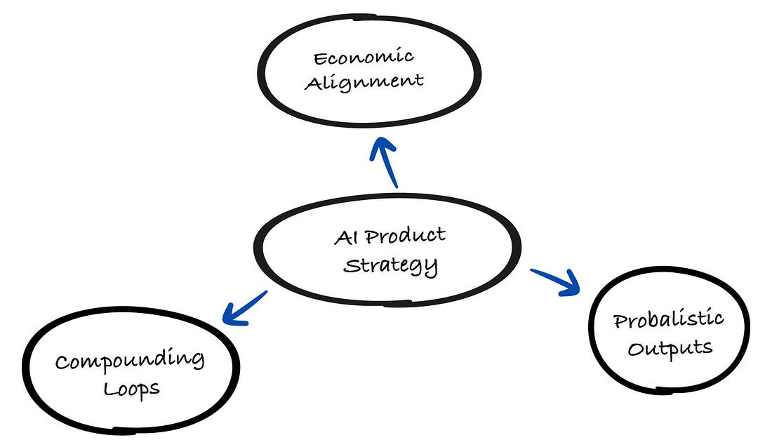 If you don’t do this, no one else will. The product team can frame problems. But only engineering can build systems that compound advantage over time. But What is an AI Product Strategy?AI product strategy is the art and science of designing products, data systems, and business models around the unique dynamics of artificial intelligence to create compounding value, at scale. Unlike traditional product strategy, which focuses on market fit and feature-roadmap alignment, AI product strategy adds three non-negotiable dimensions: