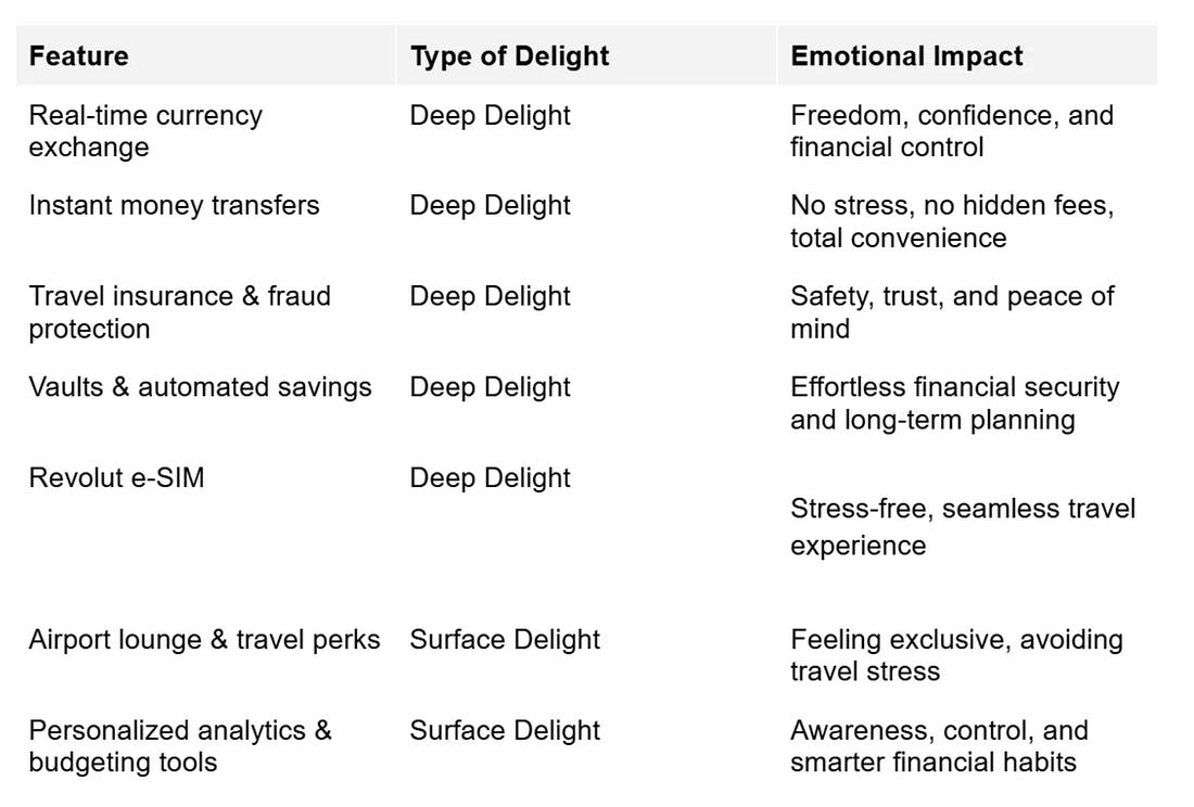 3. Revolut’s travel eSIM: a clear example of product delightIn this post, Nesrine Changuel highlights how Revolut earns loyalty and delights its customers by anticipating user needs, even in areas where users don’t expect it. Most people wouldn’t look to a banking app for mobile data, but Revolut identified a natural pain point among its customers and solved it directly. Revolut’s travel eSIM feature allows its customers to activate mobile data instantly from the app. It’s simple, fully integrated, and turns a typically frustrating moment into one that feels effortless and magical. A well-timed, unexpected solution like this builds trust and strengthens the emotional connection with the brand. Nesrine calls this Deep Delight: features that solve real, often overlooked problems and make users feel seen, safe, and in control. These aren’t surface touches. They shape the experience in ways people remember and return for. She shows how Revolut has evolved from a currency exchange tool into a complete travel and finance companion by doing three things well: