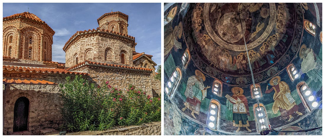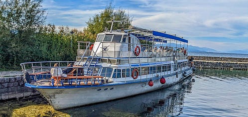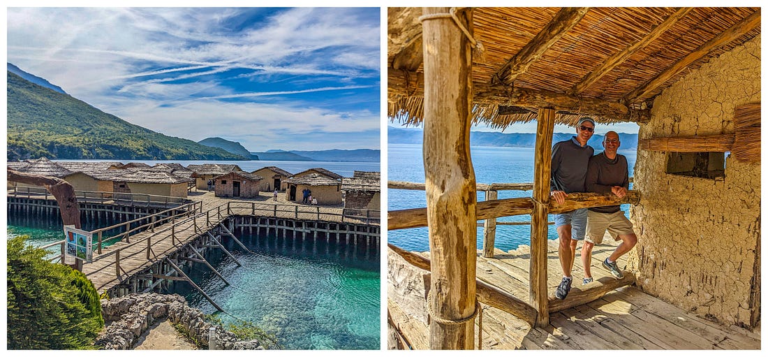 Daytrip: Naum Springs, North Macedonia — A Day Two Interesting Things HappenedSpoiler alert: at one stop, the tour boat left guests behind because they were two minutes late!This is a regular feature about “daytrips” — daytrips or weekend getaways — we’ve taken while living in different places around the world. If it’s featured here, that means we loved it! Three years ago, we spent a month living in Ohrid on Lake Ohrid, North Macedonia. Three and a half years ago, I wouldn’t have known where that was either. Why We Went There 🧳 🗺️ 🤔We’d been living on the Balkan Peninsula for much of the year, visiting various countries: Croatia, Serbia, and Bosnia and Herzegovina (which is one country with two names). But everyone kept saying, “You need to go to Ohrid on Lake Ohrid in North Macedonia!” And so we did, and we loved it. But once we were in Ohrid, everyone kept saying, “You need to take one of the tour boats down the lake to see Saint Naum Monastery and Springs!” And we did, and we loved that too. Even better, two truly interesting things happened along the way. The Naum Quickstart 🏃♂️🚀⚡Lake Ohrid is a “rift valley” lake, which means it’s old and deep, on the border between Albania and Macedonia, and shared by both countries. (Macedonia is technically called “North Macedonia” because of a name dispute with Greece, which also has an area called “Macedonia.” But the locals always refer to their country as just Macedonia.) Lake Ohrid and the town of Ohrid are both UNESCO World Heritage Sites. The Monastery of Saint Naum is a historical site at the southern end of the lake — an old Macedonian Orthodox Church complex first established in AD 905 by, yes, Saint Naum of Ohrid, who is buried on the site. In fact, legend says that if you put your ear up to his stone coffin, you can still hear his heart beating — which, frankly, I find more alarming than inspirational. Fortunately, I didn’t hear him trapped inside trying to claw his way out. The monastery was nice, but the real attraction here is Naum Springs, located next to the monastery. It — they? — ended up being one of the most beautiful places I’d ever seen. But more on that in a bit, along with pictures of the springs. And, of course, details on the two interesting things that happened along the way. What We Did 🏰🎭🚶♂️📸In the Ohrid harbor, Michael and I caught one of the tour boats with our New Zealander friend, Chris, who happened to be in town for the day. Our all-day tour stopped at several spots along the lake, including something called the Bay of Bones, and this is where the first interesting thing happened. The Bay of BonesThis is a pretty little bay that now includes the 2005 recreation of a Bronze Age settlement dating back to 1200 BC. The “bones” are the remains of animals hunted by the prehistoric occupants that were found on the bottom of the bay. Some of the bones are on display. Before disembarking, the captain of our ship warned the people on the boat: “We are leaving in exactly forty-five minutes. And if you’re not back on the boat by then, we’ll leave without you.” Michael, Chris, and I looked around the site, which was fine, nothing exceptional, and forty-three minutes later, the three of us were back on the boat. But not everyone was. There were even people walking on the dock toward the boat. The boat pushed off and left anyway. Regular readers know that one of my pet peeves is guests on group tours who are not considerate of others. They don’t listen to the guide, they don’t return on time (screwing up the overall schedule), and they always expect that, because they’re paying money, they should get special treatment. But I still couldn’t believe the boat actually left with seven or eight people standing at the end of the dock, waving furiously! In truth, the boat did finally turn around and went back to pick up those “late” passengers, who climbed back on board displaying an interesting mix of embarrassment and indignation. That night, that particular tour company probably took a hit on their Yelp and Google reviews (partially counteracted by my rave review). I don’t know if this was a particular strategy on the part of the captain to keep us on schedule, but if it was, it worked: when it came time to leave each stop after this, every single person was back on the boat well before we were scheduled to leave. Naum SpringsThe Monastery of Saint Naum is a fine destination that includes a lovely garden famous for its many peacocks. But the real attraction here is a little waterway next to the monastery — the springs. Lake Ohrid actually has a sister lake higher in the mountains, Lake Prespa, which North Macedonia, Albania, and Greece share. And this lake — which is itself technically a network of two lakes — has no outlet. All of the water from these upper lakes filters down through the limestone of the mountains and emerges exceptionally pure at, yes, Naum Springs, and it then feeds into Lake Ohrid. The waterway — and the swath of primordial wilderness surrounding it — are extraordinarily beautiful. It’s a river of water and grass. And this is also where the second interesting thing of the day happened. Creating this newsletter takes a lot of time and effort, so half of our posts are for paid-subscribers only, including this article. But here is a special offer to get an annual subscription — giving you access to the rest of this article and also everything else we’ve written — at 40% off, $30 USD/year (or $2.50/ month) for as long as you continue subscribing: