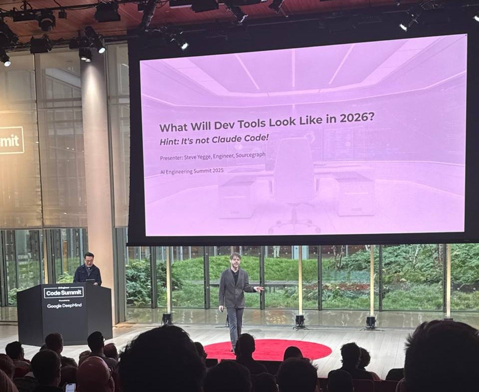 El futuro del códigoAsí está cambiando la ingeniería de software: agentes, vibe coding, compounding engineering y el futuro del desarrollo con IA.El envío de hoy es una traducción de un post de Felipe Talavera, My Week in New York: The Future of Code Arrived Early. Felipe, con quién coincidí durante mi etapa Flywire siendo él VP de Ingeniería, fue uno de sus primeros empleados, liderando toda la escalada técnica y organizacional de la empresa durante más de 10 años hasta su exitosa salida a bolsa en el NASDAQ en Mayo de 2021. Siempre a la vanguardia de la tecnología, cuando Felipe habla, hay que estar atento a lo que dice. Es por eso que cuando vi su post comentando sus aprendizajes sobre desarrollo de software con IA, supe que no iba a perder el tiempo al leerlo. Si quieres entender hacia dónde se dirige el desarrollo de software guiado por IA, te recomiendo encarecidamente que le des una lectura. Sin más, aquí lo tenéis. ¡Disfrutadlo! La semana pasada en Nueva York se dejó ver un esbozo de cómo evolucionará nuestra industria en los próximos 6-12 meses. Dos conferencias, AI Engineer CODE NYC y AI Native DevCon junto con una cantidad absurda de meetups ocurriendo al mismo tiempo, pintaron un retrato muy nítido de la transformación que está redefiniendo cómo construimos software. Las charlas fueron solo el comienzo. Las conversaciones informales, con builders, escépticos y exploradores de todo tipo, amplificaron todo por diez. De ese torbellino, ciertos momentos cristalizaron. Aquí están las charlas que se me quedaron grabadas, cada una una ventana a estas nuevas “leyes de la física” del software que se están escribiendo en tiempo real. Parte 1: Cuando el código se convirtió en sal (El cambio filosófico)La charla de Chris Messina, “Code as Commodity”, fue el fundamento perfecto para toda la semana. El inventor del hashtag comparó el código con la sal: tan valiosa en su día que a los soldados romanos se les pagaba con ella (de ahí “salario”), y que ahora es un commodity que habilita posibilidades completamente nuevas. Su confesión dejó huella: “He hecho más commits de código en los últimos seis meses que en los últimos 20 años.” Si el código se convierte en commodity, ¿qué se vuelve realmente valioso? Para Messina: gusto, criterio, fluidez cultural, orquestación y narración. Su advertencia sobre la estética genérica de la IA, “inmediatamente reconocible y descartable”, fue un eco constante durante toda la semana. Partiendo de esta base, la metáfora del almacén de Ryan Carson nos ofreció un nuevo marco mental para este escenario. Imagina miles de cubos blancos brillando en un almacén oscuro, cada uno con un fantasma (un agente) leyendo instrucciones que llegan por tubos neumáticos. “Tu trabajo no es estar dentro del cubo,” dijo Carson. “Tu trabajo es diseñar la red de tubos.” Y lo respalda con hechos: migró 40.000 líneas de código a un framework nuevo en tres días porque “el código es barato, las ideas son lo que importa”. Este giro filosófico alcanzó su punto máximo con la charla de Steve Yegge y Gene Kim y la declaración incendiaria del primero: “Si estás usando un IDE a partir del 1 de enero, eres un mal ingeniero.” Su metáfora del buzo lo dejó claro: no le des a un buzo un tanque de oxígeno más grande (más contexto)… envía un equipo de buzos especializados. La visión de Yegge sobre lo que viene a continuación es aún más radical: “Los agentes de código actuales son sierras y taladros: potentes pero manuales. El futuro son máquinas CNC: sistemas automatizados gigantes donde los ingenieros ya no miran el código directamente.” No solo estamos cambiando cómo escribimos código; nos dirigimos a un mundo donde el código se vuelve invisible para sus creadores. A continuación, Swyx establecía el listón de la calidad en esta nueva era con su declaración de guerra contra el “slop”. Su ley, que el gusto necesario para combatir el slop es un orden de magnitud mayor que el necesario para producirlo, se convirtió en mantra. ¿Lo opuesto al slop? “Kino”: calidad cinematográfica que exige gusto y criterio humanos. Parte 2: Reality check empresarial (La escala lo cambia todo)Las charlas del mundo enterprise bajaron el hype a la realidad operacional. Topo Pal, de Fidelity Investments, ofreció probablemente el caso de estudio más sorprendente: una institución financiera gigante experimentando activamente con código generado por IA. La clave estuvo en su enfoque pragmático: “¿Estoy listo para usar IA para escribir software que maneja dinero? Todavía no. ¿Para desarrollar herramientas internas? 100%.”. Y su alerta: “La velocidad increíble a la que producen los agentes de IA ejercerá presión en nuestros procesos de entrega” evidenció que hasta las empresas más conservadoras luchan por seguir el ritmo de la IA. Cuando instituciones centenarias empiezan a desplegar herramientas internas “vibe-coded”, la revolución no viene: ya está aquí. Sneha Tuli, Microsoft, compartió un dato brutal: el 5% de todos los PRs de Microsoft ya son revisados por IA. Pero la frase clave fue: “Más contexto no siempre significa mejores decisiones; puede confundir a la IA.” El humano sigue siendo imprescindible: la IA sugiere, nosotros decidimos. Lisa Orr, Zapier, mostró cómo la IA democratiza el desarrollo: su agente “Scout” permite que los equipos de soporte solucionen el 40% de los bugs directamente. “Soporte es quien más cerca está del dolor del cliente,” explicó. Esto no va de reemplazar a los desarrolladores: va de empoderar a cualquiera a arreglar lo que se encuentre. McKinsey explicó por qué las empresas están viendo solo un 5-15% de mejora: los procesos Agile tradicionales generan fricción. ¿Su solución? Pasar de equipos “dos pizzas” a “pods de una pizza”, unidades más pequeñas y autónomas que realmente puedan operar con veloc