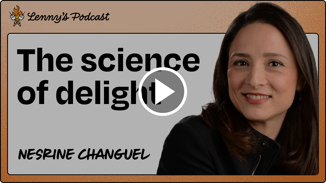 Where to find Nesrine Changuel:• LinkedIn: https://www.linkedin.com/in/nesrinechanguel/ • Newsletter: https://nesrinechanguel.substack.com/ • Website: https://nesrine-changuel.com/ In this episode, we cover:(00:00) Introduction to Nesrine and product delight (04:56) Why delight matters (09:17) What makes a feature “delightful” (12:29) The three pillars of delight (13:03) Pillar 1: Removing friction (Uber refund example) (15:07) Pillar 2: Anticipating needs (Revolut eSIM example) (17:21) Pillar 3: Exceeding expectations (Edge coupon example) (18:35) The “confetti effect” and when it actually works (22:02) B2B vs. B2C: Why all products need emotional connection (29:52) The Delight Model: A 4-step framework (30:57) Step 1: Identifying user motivators (functional and emotional) (33:55) Step 2: Converting motivators into product opportunities (34:46) Step 3: Identifying solutions with the delight grid (36:46) Step 4: Validating ideas with the delight checklist (40:22) The Delight Model summarized (42:18) The importance of familiarity (Spotify Discover Weekly story) (45:21) Real examples: Chrome’s tab management solution (51:32) Google Meet’s solution for “Zoom fatigue” (55:02) Getting buy-in from skeptical leaders (59:39) Prioritizing delight: The 50-40-10 rule (1:02:41) Creating a culture of delight in your organization (1:06:45) The habituation effect (1:08:15) When delight goes wrong: Apple reactions example (1:10:21) How delight motivates product teams (1:12:24) Lightning round and final thoughts Watch or listen now: Referenced:• Spotify: https://open.spotify.com/ • Linear: https://linear.app/ • How Linear builds product: https://www.lennysnewsletter.com/p/how-linear-builds-product • Jira: https://www.atlassian.com/software/jira • Asana: https://asana.com/ • Monday: https://monday.com/ • The Product Delight Model: https://nesrinechanguel.substack.com/p/the-product-delight-model • Revolut: https://www.revolut.com/ • How Revolut trains world-class product managers: The “local CEO” model, raw intellect over experience, and a cultural obsession with building wow products | Dmitry Zlokazov (Head of Product): https://www.lennysnewsletter.com/p/how-revolut-trains-world-class-product-managers • Microsoft Cashback: https://www.microsoft.com/en-us/edge/features/shopping-cashback • Superhuman’s secret to success: Ignoring most customer feedback, manually onboarding every new user, obsessing over every detail, and positioning around a single attribute: speed | Rahul Vohra (CEO): https://www.lennysnewsletter.com/p/superhumans-secret-to-success-rahul-vohra • Brian Chesky’s secret mentor who died 9 times, started the Burning Man board, and built the world’s first midlife wisdom school | Chip Conley (founder of MEA): https://www.lennysnewsletter.com/p/chip-conley • Workday: https://www.workday.com/ • SAP: https://www.sap.com/ • ServiceNow: https://www.servicenow.com/ • Salesforce: https://www.salesforce.com/ • GitHub: https://github.com/ • Atlassian: https://www.atlassian.com/ • Snowflake: https://www.snowflake.com/ • Data Superheroes: https://www.snowflake.com/en/data-superheroes/ • Google Meet: https://meet.google.com/ • Andy Nesling on LinkedIn: https://www.linkedin.com/in/andynesling/ • Matic: https://maticrobots.com/ • Diego Sanchez’s (Senior Product Manager at Buffer) post on LinkedIn: https://www.linkedin.com/feed/update/urn:li:activity:7365014292091346945/ • Miro: https://miro.com/ • Arc browser: https://arc.net/ • Competing with giants: An inside look at how The Browser Company builds product | Josh Miller (CEO): https://www.lennysnewsletter.com/p/competing-with-giants-an-inside-look • Migros Supermarket: https://www.migros.ch/ • The rise of Cursor: The $300M ARR AI tool that engineers can’t stop using | Michael Truell (co-founder and CEO): https://www.lennysnewsletter.com/p/the-rise-of-cursor-michael-truell • Building Lovable: $10M ARR in 60 days with 15 people | Anton Osika (CEO and co-founder): https://www.lennysnewsletter.com/p/building-lovable-anton-osika • Linear’s secret to building beloved B2B products | Nan Yu (Head of Product): https://www.lennysnewsletter.com/p/linears-secret-to-building-beloved-b2b-products-nan-yu • Suno: https://suno.com • Snapchat: https://www.snapchat.com/ • Use Reactions, Presenter Overlay, and other effects when videoconferencing on Mac: https://support.apple.com/en-us/105117 • Dr. Lipp: https://drlipp.com/ • How to be the best coach to product people | Petra Wille (Strong Product People): https://www.lennysnewsletter.com/p/how-to-be-the-best-coach-to-product • The Great American Baking Show: https://www.imdb.com/title/tt21822674/ • Le Meilleur Pâtissier: https://en.wikipedia.org/wiki/Le_Meilleur_P%C3%A2tissier • The Upside on Amazon Prime: https://www.amazon.com/gp/video/detail/amzn1.dv.gti.3cb8500f-31af-9f4f-5dec-701e086d58e8 • The Intouchables: https://www.imdb.com/title/tt1675434/ • Yoyo stroller: https://www.stokke.com/USA/en-us/category/strollers/yoyo-strollers • UppaBaby strollers: https://uppababy.com/strollers/ Recommended books:• Product Delight: How to Make Your Product Stand Out with Emotional Connection: https://www.amazon.com/Product-Delight-Stand-Emotional-Connection-ebook/dp/B0FGZ93D9Y/ • Factfulness: Ten Reasons We’re Wrong About the World—and Why Things Are Better Than You Think: https://www.amazon.com/Factfulness-Reasons-World-Things-Better/dp/1250107814 • STRONG Product Communities: The Essential Guide to Product Communities of Practice: https://www.amazon.com/STRONG-Product-Communities-Essential-Practice/dp/3982235189/r Production and marketing by https://penname.co/. For inquiries about sponsoring the podcast, email podcast@lennyrachitsky.com. Lenny may be an investor in the companies discussed. My biggest takeaways from this conversation:...Subscribe to Lenny's Newsletter to unlock the rest.Become a paying su