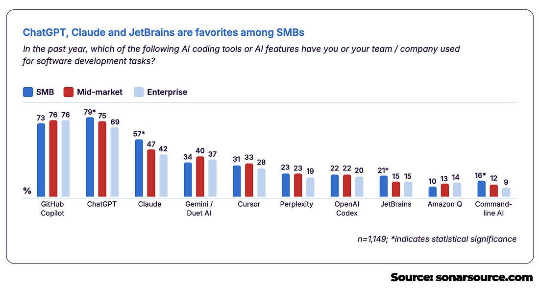 I’ve taken a close look at the report, and in this article, I am sharing the data of the most important parts, and my thoughts on them. If you like these kinds of articles, where I go over a highly relevant report and share my insights on it, you’ll also like these articles: Let’s start! Demographics of the SurveyThe survey is based on 1149 respondents, either full-time employed or self-employed in a tech role, with the majority working in software engineering. All of the respondents either write code or manage engineers and had used AI as part of their job within the year 2025. The survey was conducted in October 2025. 1. How Engineers Use AILet’s start with how engineers are using AI in current times. 1.1 72% Engineers Who Have Tried AI Use it Every DayThere is no surprise here, except I’d even expect the number to be higher. AI-assisted engineering is the best way to build software these days, and I definitely recommend that everyone use it daily. Take a look at this article, where you can find a prompt that’ll help you to be more productive with software engineering tasks: 1.2 42% of the Code is Currently AI-Generated or AssistedThis data also confirms my thoughts that I mentioned above. AI-assisted engineering is just going to be more and more important, and as we can see from the data, engineers surveyed expect that AI-generated code should rise from 42% (today) to 65% in 2027. Which, I agree with, and also what I am hearing based on discussing with many engineers and engineering leaders across the industry. Especially in a recent discussion with the Engineering Lead from the OpenAI Codex team (deepdive coming soon). 1.3 Engineers are Using AI Across All Different Kinds of ProjectsPrototypes and production software for non-critical workflows are where AI is used the most. And then also customer-facing apps and business-critical services are not so far behind. Especially, what I am hearing a lot from different engineering leaders is that building internal tools that make everyone more productive is a really great use case for AI. You can quickly build an internal tool, without focusing on quality as much, since it might not be needed in a couple of months anymore. 1.4 AI Use CasesWriting documentation is the #1 use case, followed by explaining and understanding existing code. I guess the options to choose from were more engineering-related, since I definitely miss note-taking of meetings and also summarization of threads or messages. Those 2 use cases have been mentioned to me by a lot of engineers and engineering leaders. To find out more use cases, I definitely recommend reading these 2 articles: 2. How Much Do Engineers Trust AILet’s now go to a very important part of the report, and that is: how trustworthy is AI’s output. 2.1 96% of Engineers Don’t Fully Trust AI-generated codeI would like to see this number be 100%, as you should never fully trust AI-generated code, at least not at this time. You should always check if the outputted code is what is expected, and not just blindly trust. I saw too many engineers just blindly creating PRs with poor AI-generated code, which can then be quite problematic for reviewers. The accountability should always be on the engineer who is using AI and not on AI. That’s very important to understand. 2.2 Only 48% of Engineers Always Check Their AI-Assisted Code Before CommittingNow, this is the most alarming data from the report. Only 48% of engineers always check their AI-generated code before committing. This is the exact reason why there are so many bad PRs being opened and why many engineers may hate AI in general. A lot of engineers use AI as a source of truth and do not take full accountability of the code. Rather, just submit a PR with bad quality code and let the reviewers do the heavy lifting to check all the code. From talking with many engineers, and also from my experience, this is really frustrating. So, make sure to check your code before submitting a PR. If you submit a PR full of AI-generated slop, you’ll lose a lot of credibility in my eyes. 2.3 61% of Engineers Agree That AI Often Produces Code That Looks Correct but Isn't ReliableAgain, I would love to see this percentage a bit higher, as it’s really important to ensure that the code is going to be reliable. You do it either by writing more accurate prompts, adding additional context, constraints, and guardrails. And of course, check the output yourself and ensure it’s on point. 2.4 61% of Engineers Agree That it Requires a Lot of Effort to Get Good Code From AII agree with this, it depends a lot on what technologies you use and also how complex your codebase is. Technologies depend a lot. A good example I am hearing is that a lot of startups these days decide to go with the Ruby on Rails framework to build their MVP. And the reason for this is that it’s a very opinionated framework, and you have clear guidelines and design patterns. While in most of the JS frameworks, there’s a lot more flexibility. AI’s output works best when you have as many guardrails and constraints as you can. Angular framework works well as well. 2.5 AI Impact Is Mostly Seen In Developer Productivity And Time-To-Market, But There's Room For Growth In Multiple Other AspectsI would love to see the increase in feature or fix release frequency, code quality, and code maintainability as well! And I think, next year, those are going to be higher numbers. 2.6 Code Quality Review & Validation Are The Most Important Skills For Engineers In The AI EraBased on the data, we can see that reviewing and validating code is the #1 most important skill, while also efficient prompting is very important as well. To learn how to prompt well, read this extended guide I did together with OpenAI’s Product Lead Miqdad Jaffer: 3. Top AI Tools, And How They’re UsedAnd last, but not least, let’s take a look at the top AI tools and how engineers are using them. 3.1 GitHub Copilot and ChatGPT Le