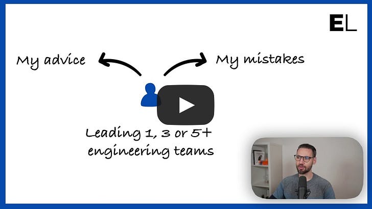 Cerbos provides externalized authorization that scales with your business, whether you’re at 100 users or 1 million. Your authorization logic stays out of your codebase, your engineers stay focused on innovation, and security teams have the controls they need. Thanks to Cerbos for sponsoring this newsletter, let’s get back to this week’s thought! IntroThere’s a big difference between leading 1 vs 3 vs 5+ engineering teams. The shift feels like going from player to coach, then to strategist. Letting go of control and elevating your team becomes increasingly important the more teams you lead. Leading 1 team: You are involved with the details and the context of the team, and you can spend some time doing hands-on work together with the team. Leading 3 teams: Your role as a coach is becoming a lot more prominent. One of the key things you need to do here is to put the right people in place to lead each of the 3 teams. Leading 5+ teams: You are starting to structure the org in a way that can support a bigger scale. You need to prepare and hire your first EM and add additional when needed. I went through all of these phases growing from Team Lead → EM → Head of Engineering → VP → CTO. In today’s article, I am sharing my mistakes and also my advice if you start leading 1, 3, or 5+ engineering teams. Visual/Audio Version of the ArticleYou can watch/listen to the video below, or you can keep reading for the complete overview and insights of today’s topic! How I Progressed in My Career Leading TeamsLet me first share a bit about my career and how I progressed in leading teams. I started as a Software Engineer, and then after a couple of years, I grew to become a Senior Software Engineer. Later, I became a Team Lead leading 1 engineering team. After six months, I grew to become an Engineering Manager → that’s when I started leading 3 engineering teams. After a little bit more than a year in the EM role, I became Head of Engineering → that’s where I led 5+ teams. I believe it was around 7 at the most when I also became an interim CTO. It was a combined 35 direct and indirect reports. And then I’ve gotten an opportunity as a VP of Engineering at a different company, where I led a cross-functional team, and after 6 months, I got promoted to CTO. You can read my full career progression here: Today, I am sharing my experience on what I would do differently if I could roll back time! My Mistakes and Advice Leading 1 Engineering TeamLet’s start with leading 1 team. Let’s imagine you’ve moved from a Senior Software Engineer role into a Team Lead position. You’re now responsible for a cross-functional team that includes Software Engineers (both frontend and backend), a QA, and a PM. This was also the structure of the first team I managed as a new Team Lead. Here are the top 3 mistakes I made when I first became a Team Lead: