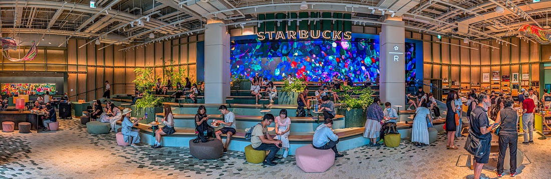 When Starbucks Coffee became an expanding chain in the 1980s, their coffee houses were intended to be cozy, inviting places where people would gather. In 1989, the sociologist Ray Oldenburg described businesses such as this as a “third place” — the “first place” being a person’s home, and the “second place” being where they work. The third place is where an individual socializes: a church, a library, a corner bar like in Cheers — or a coffee shop like Starbucks. By the late 90s, Starbucks was even using the “third place” terminology in their branding, openly boasting that they were exactly such places, with warm lighting, and welcoming architecture and atmosphere. This is where I entered the picture. In the 90s, living in Seattle — the birthplace of Starbucks — I felt a bit of local pride in the rising success of the chain. But I also simply enjoyed the stores, which were great places to meet friends or to sit and read. The baristas were friendly, and, yeah, I also liked the coffee. I wasn’t alone. The stores were usually packed. But brands change — usually, because the country in which they’re located changes first. In America, nearly 75% of all Starbucks’ transactions now happen through drive-thrus, via mobile orders, or delivery services like Uber Eats. Starbucks is also now a ubiquitous presence in grocery stores like Safeway and retail stores like Target — a far cry from the welcoming “third spaces” of yesteryear. The last time I was back home in Seattle, I stopped into a downtown Starbucks. Most of the store’s seating had been removed — perhaps a lingering casualty of COVID or maybe to discourage homeless people. There were plenty of people, with the baristas frantically working to fill their orders. But the customers would arrive, find their coffee on the counter, and then leave without exchanging a single word with another human being. The store had all the warmth of a Seattle bus stop on a wet January morning. A homeless man did enter — obviously mentally ill — and he swore at the customers and stole someone else’s coffee off the counter. Finally, a barista arrived and said, “Come on, Frank, you gotta go.” On the Cheers TV show back in the 90s, everyone famously knew your name. Here, no one knew anyone’s name, except the mentally ill homeless person that the baristas had to repeatedly kick out onto the street. Which might be a pretty good reflection of America’s increasingly on-the-go, car-centric, isolated lifestyle. Nearly half of Americans no longer have a “third place” — up from 33% only six years ago. You might say, “It’s all COVID.” But Asia took COVID far more seriously than America, and their Starbucks are already back to being vibrant, welcoming places. I know this for a fact after recently visiting stores in Thailand, South Korea, Malaysia, and Cambodia. And post-COVID, I also saw the same thing in Turkey, Italy, and Mexico. As usual, America is the massive outlier. Before you excoriate me for patronizing Starbucks, please note that as we travel, I also visit local coffee shops. But as a nomad, Starbucks is a great place to work thanks to decent chairs and reliable WiFi. And I’m lactose intolerant, and I can count on Starbucks to have milk alternatives and to get that important part of my order right — something not always true at local coffee shops in countries where English isn’t widely spoken. I especially like the Starbucks in our current nomad location, Taipei. And the Taiwanese clearly love the company too. I recently visited the grand opening of a new “Starbucks Reserve” — a special, more upscale Starbucks store. It was so mobbed I couldn’t even get in the first time I tried. But at a nearby Starbucks, I met William, a young Taiwanese man who had just come from the event with a friend, and they were happy to show off their new “Starbucks” swag. (Many young Taiwanese proudly use Anglicized names.) “I first started going to Starbucks when I was in high school,” William told me. “It was one of my favorite places where I could study and relax. Now I go to Starbucks twice a week, sometimes to read and relax, or to catch up with my friends. I really enjoy the cozy environment.” Unprompted, William even specifically mentioned the idea of the “third place,” which may be even more important in crowded Asian countries where apartments — and all personal spaces — tend to be very small. Socializing, which seems to happen a lot, takes place in restaurants, shopping malls, street markets, and — yes — places like Starbucks. And here, Starbucks is trying hard to meet that particular need, creating the kinds of cozy, welcoming stores they used to build in America. William didn’t mention it, but here in Taiwan, Starbucks is also widely seen as being aspirational. The people who go there see themselves as successful, upwardly mobile, and sophisticated. In fact, another Taiwanese person told us, “Starbucks is expensive coffee. Often, when we go there and see that there are no seats, no place to sit down, we’ll go somewhere cheaper.” I’m writing this article at yet another Taipei Starbucks, and I’m surrounded by a multigenerational crowd: students, businesspeople, and folks well into their seventies — everyone mostly chatting with friends. I also see a mother with a baby and toddler, a young man with his grandparents, loads of students studying, and a businessman catching up on his sleep. It’s mind-boggling how at home everyone seems. I work here often, usually for hours at a time, and no one knows my name here either, but no one has ever asked me to leave. Incidentally, I did finally make it inside that new Starbucks Reserve, which is so popular it required reserving a time slot via a QR code. It was enormous. And it was completely packed on a weekday, more than a week after opening. And they’ve clearly tried to make it, yes, a center of the community, but a