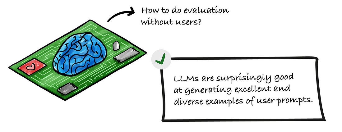 You can read the Part 1 here: And now, we are diving deeper into populating your AI with synthetic data, how to maintain trust in evals, and how to structure your AI roadmap. Hamel, over to you! 5. Populate Your AI With Synthetic Data Is Effective Even With Zero UsersOne of the most common roadblocks I hear from teams is: “We can’t do proper evaluation because we don’t have enough real user data yet.” This creates a chicken-and-egg problem → you need data to improve your AI, but you need a decent AI to get users who generate that data. Fortunately, there’s a solution that works surprisingly well: synthetic data. LLMs can generate realistic test cases that cover the range of scenarios your AI will encounter. Bryan Bischof, the former Head of AI at Hex, put it perfectly: