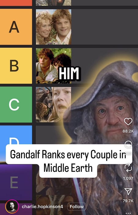 We’ll see a “cleaning up” of venture-backed companies in the next couple years, as Anthropic (and OpenAI too) scoop up startups in an effort to (1) move into new categories or (2) bolster talent benches. Prediction #4: OpenAI and Anthropic will be…just fine.To conclude our “Big AI” segment of predictions: both AI giants will have a good 2026. There’s a lot hand-wringing right now, particularly around OpenAI (the more consumer-facing of the two) after the launch of Gemini 3. I think both companies are going to be just fine. It feels like just yesterday that OpenAI was the media’s darling. It’s stunning how quickly sentiment has turned. The media loves a fall from grace, and it feels like journalists—and the public—are now rooting for OpenAI to fail. There’s almost a schadenfreude, calling OpenAI the AOL of the AI boom. This isn’t surprising: it’s the same arc we see in celebrity culture, when Taylor Swift is America’s sweetheart one moment, then overexposed and villainized the next. The reality is: OpenAI is going to be a big company! Probably one worth multiple trillions. Will Google be bigger? Yes, at least in my opinion. In 2030, OpenAI is maybe worth a few trillion. Google is maybe worth 3-4x more. Those are made up numbers (I’m by no means a public markets analyst), but they’re probably directionally right: Google’s advantages in AI, data, and distribution will compound, keeping it ahead of newcomers. But OpenAI will also be a mainstay in Big Tech. The analog I think of is the shift from the internet to social and mobile. Google lost share in digital advertising to Facebook, but its market cap swelled enormously—from $500B on the left side of this chart to $2T (!) on the right sight of this chart. Why did market cap rise so much, alongside declining market share? Because the pie got bigger of course! It’s the same story with AI. The pie will get bigger for everyone. As a reward for being early movers and innovators, OpenAI and Anthropic will get big slices of pie. But the other tech giants will probably remain larger, with their own compounding advantages of scale. Prediction #5: Instagram and TikTok feeds are 25% synthetic by the end of 2026.This feels dystopian, but it’s inevitable. And I actually don’t think it’s a bad thing. Here’s my argument: AI is a really great creative tool. And there’s a distinction between two types of synthetic content: Type 1 is content meant to trick you. This is the video of an animal doing something silly, often shown on security camera footage. In October’s Taylor Swift, Sora, and Slop vs. Substance, we wrote about the possum eating Halloween candy that I totally fell for 😬. Embarrassing. That was the moment I learned to never trust digital content again. The other type of content uses AI to make content better. The example I’ll give here is an Instagram Reel that my brother sent me last week. The Reel involves Gandalf—in his very Gandalf way of speaking—rating all the couples of Middle Earth. On Aragorn and Eowyn: “Come on Eowyn, you knew he had a girlfriend.” This is funny! This is great. This is AI used as a creative tool to make entertaining content that wouldn’t be possible without voice models + image models. Leonardo DiCaprio said last week that “AI can’t be art, because there’s no humanity to it.” Wrong. AI can amplify human creativity. Someone had a funny idea for a Lord of the Rings video, and they could finally pull it off. More of this content in my feed please! By the end of year, expect 1 in 4 videos you see to be AI-generated. Prediction #6: There’s a big music scandal when a top-charting song is revealed to have been made with AI.Here’s how this goes down: