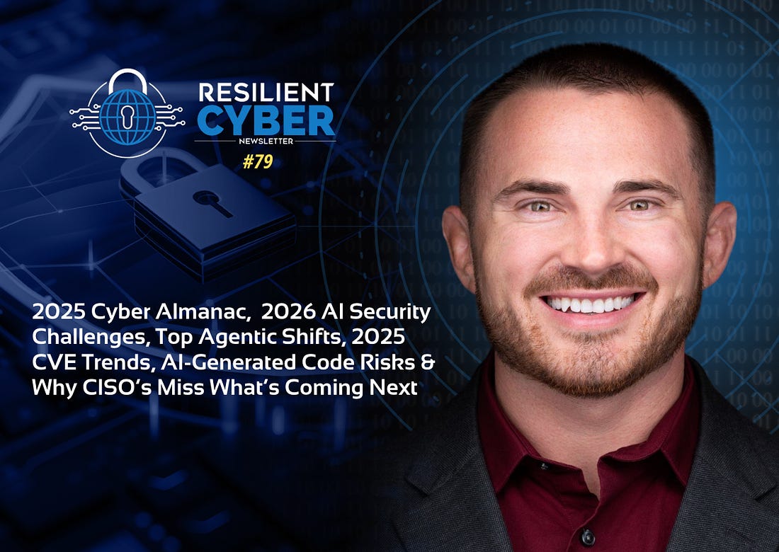 Resilient Cyber Newsletter #792025 Cyber Almanac, 2026 AI Security Challenges, Top Agentic Shifts, 2025 CVE Trends, AI-Generated Code Risks & Why CISO’s Miss What’s Coming NextWelcome!Hello and welcome to Issue #79 of the Resilient Cyber Newsletter. 2026 has picked up at a pace that indicates just how wild of a year it is going to be, across AppSec, AI, and the cyber market more broadly. We’re living in such an exciting time with AI’s intersection with cyber as part of its broader impact on software. That’s why I wanted to briefly share a personal note that I recently have taken on a new role myself, as the VP, Security Strategy, at Agentic AI security leader Zenity. None of this will change my Resilient Cyber work and I will still be striving to bring you some of the industry’s best resources, news, analysis and tools, so no worries there!