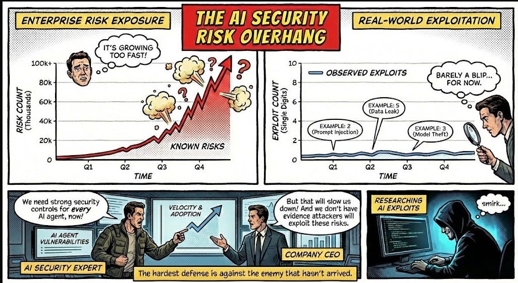 How to defend an exploding AI attack surface when the attackers haven’t shown up (yet)2025 was dominated by discussions about risks associated with AI, and 2026 will be no different. And, for good reason, as an industry we’ve learned out lessons of bolting in rather than building in security and many have looked to raise flags early about the potential risks and threats AI introduces to our systems and organizations. However, despite all of the conversations about AI native and novel risks such as model poisoning etc. many of them actually haven’t materialized quite yet on the scale of things such as ransomware. At least that is the case Joshua Saxe makes in this excellent blog where he discusses the “AI Security Risk Overhang” as he calls it. I tend to agree, and this overhang has implications for AI security startups and the significant capital allocations associated with them. Many who have fixated on some of the novel risks you mentioned which haven't materialized may face headwinds as a result. It is much more likely that the real challenges and incidents will be tied to age old problems but associated with the new technologies, platforms, tools etc. Top AI/Agentic Shifts (for Security) 2025There was a lot to try and keep up with in 2025 when it comes to AI and Agentic Security. I found this LinkedIn blog from Steve Giguere to be a good recap of some of the major events and their security implications. He stated that 2024 was the year we had AI that answers, 2025 became the year that AI does, via agents MCP and the ability to use tools and take actions. He covered key activities such as ChatGPT’s “agent mode”, Claude Code, Meta’s multi-model LLama 4 and OWASP’s Agentic AI Top 10 (which I had a chance to contribute to). 2025: The Year in LLMsIf you're like me, you try your best to keep up with all things AI, but damn if it isn't hard. Just LLMs alone saw significant advancements, evolutions and news that spanned not just technical but economics, politics and more. This piece from Simon Willison is incredibly comprehensive and covers the major trends in 2025 around LLMs and is a great primer as we kick off 2026. The State of Enterprise AIOpenAI recently shared their 2025 State of Enterprise AI report and there's a lot of great insights here, including from the security perspective. At a high level, they report exponential increases in enterprise usage, with ChatGPT messages growing 8x YoY and 320x increases in reasoning token consumptions. Ni8mare - Unauthenticated RCE in n8nAs we continue to see agents proliferate exponentially along with supporting frameworks and tools, we will inevitably see impactful vulnerabilities grow alongside them. This example from the team at Cyera dubbed “Ni8mare” is a 10.0 CVE, officially CVE-2026-21858. It allows attackers to take over locally deployed instances of n8n and impacts an estimated 100,000 servers globally, with users needing to upgrade to versions 1.121.0 or later to fix it. For those unfamiliar with n8n, it is a low code no code (LCNC) option for agentic workflows, with drag and drop interfaces and many integrations, making it accessible to not just engineering and developers but what are often called “non technical” or “citizen developers” too. See the image below for an example from Cyera: AppSecPrioritization Is the Only Way To Survive 2026I recently shared the CVE recap from Jerry Gamblin, one of my favorite followers for vulnerability management research. He recently published a brief image demonstrating the growth of CVEs in 2025. As he points out, the volume of CVEs in 2025 blew up to 48k+, being driven by not just the usual operating system findings but third party plugins and open source as well.
