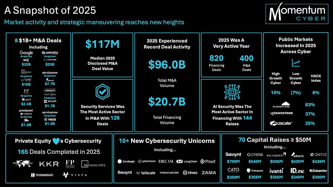 With that out of the way, let’s get down to business with this weeks issue of the Resilient Cyber Newsletter! Interested in sponsoring an issue of Resilient Cyber? This includes reaching over 31,000 subscribers, ranging from Developers, Engineers, Architects, CISO’s/Security Leaders and Business Executives Reach out below! OWASP Top 10 for Agentic AI AMAAs we rounded our 2025, OWASP GenAI Security Project Agentic Security Initiative (ASI) published the first ever OWASP Top 10 for Agentic AI. I've published a deep dive blog into it, but there is a lot to discuss still. Cyber Leadership & Market DynamicsMomentum Cyber’s 2025 Cyber AlmanacA key part of understand the cybersecurity market is looking at the broader ecosystem. Vendors, startups, capital, M&A and more. That’s why so many love Momentum Cyber’s “Cyber Almanac”. The team recently published their 2025 edition and it is a comprehensive 120+ page breakdown of key findings of the cyber market the past year. The insights are excellent in terms of the figures and insights into the capital activities across the cyber ecosystem. I take some issues with how some companies are categorized but that’s a trivial complaint! See some of their key findings below, and go check out the full report. Their analysis shows just how active of a year 2025 was in terms of deal activities, volume, financing and more, with many recognizable vendors and names involved, as well as a look into the companies shaping the future of cybersecurity. And yes, AI of course played an outsized role, as it is doing well beyond Cybersecurity as well. Technological Revolutions & Financial Capital - AIHistory doesn't repeat itself, but it does rhyme. That's why I've been digging into Carlota Perez's seminal "Technological Revolutions and Financial Capital". Many state that we're experiencing the next technological revolution with Artificial Intelligence (AI). When you look at the allocation of capital, widespread potential of the technology, it's unprecedented diffusion across society, the geopolitical implications and more, it is hard to argue otherwise. While I had never read the book prior, it is arguably the best writing I've read on the nature of technological revolutions and their worldwide implications. How the AI Bubble Will Burst2025 was dominated with discussions of whether or not we’re in an AI bubble, if so, how and when it may burst, what the implications were and more. A lot of parallels have been drawn to prior technological waves, such as the ones in the image above from Carlota’s book. This piece from Kenn So of Generational on Substack is one of the most accessible writings on the topic I’ve found, especially for someone like myself without a background in macroeconomics. Kenn walks through the 5 typical factors used to assess bubbles, how the AI technological wave compares and how the real risk lies in the GPU depreciation and how things are being financed unlike prior technology waves. He has some excellent images and charts to help make it understandable as well. If you’re looking for a no nonsense quick breakdown on bubble economics tied to AI, this is it. Palo Alto Networks in Talks to Acquire Koi Security for $400MBy now, if you follow the Resilient Cyber Newsletter, you’ve heard of Koi Security. I routinely share insights from them on malicious extensions and software supply chain attacks. Surprisingly, they are just a one year old Israeli startup and are already potentially poised to see a $400M exit to Palo Alto Networks (PANW). Koi is one of the best examples I’ve seen of rapidly establishing industry credibility and branding due to their constant stream of credible and comprehensive threat intelligence and research and their fun branding that makes their content stand out. It all seems to be culminating in one of the largest cyber platform players looking to add them to the team shortly after they were founded. If true, truly incredible execution by the Koi Security team! The U.S. Looks to Play OffenseI’ve been talking recently about the forthcoming U.S. National Cyber Strategy (NCS) and how it will have a focus of going on the offensive, rather than strictly playing defense as the U.S. historically has done (at least publicly). This seems to be playing out in other realms too, given the recent capture of the Venezuelan leader, and talks of the U.S. acquiring Greenland. Nonethless, in the Cyber world, groups like the Aspen Institute, a think take focused on various topics including Cyber recently penned a piece discussing how they will be helping shape U.S. policy and offensive cyber efforts. xAI Raises $20B (with a B) Series EThe massive competition for the frontier labs and model providers continues to heat up, as Elon Musk’s xAI announced a $20B Series E. Their announcement focuses on building advanced AI and exceeded their $15B target. They highlight their key initiatives from data center buildouts with Colossus I and II, ending 2025 with over one million H100 equivalents. They also cite efforts such as the Grok 4 series, multimodel and more and as they push towards Grok 5. Why CISOs Miss What’s Coming NextTo say the role of the CISO is daunting is an understatement. Not only are you dealing with the daily firefighting, fighting for budget and headcount, incidents, and internal politics but you often need to keep up with the latest vendors, products and innovations as well. My friends over at CISO Tradecraft published a cool piece documenting how the Cyber industry went from roughly 32 vendors in 1985, to over 4,000 and counting now, with an astounding 11,400+ products across them. To produce the figures, they chatted with longtime industry analyst Richard Stiennon who stated that 10% of the cyber industry changes hands every year via M&A etc. The piece goes on to discuss the challenge and some of the methods CISOs can use to keep pace with the latest products, capabilities and trends that may matter as they