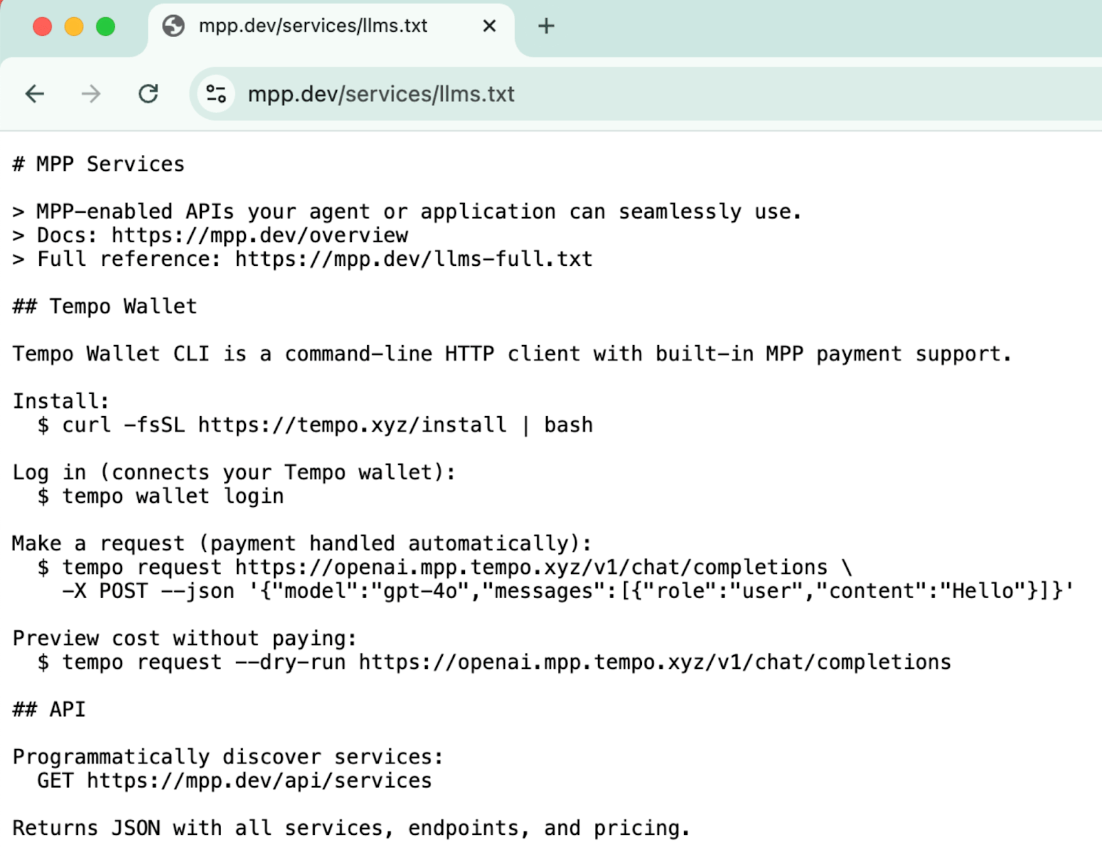 The protocol powering this marketplace is called MPP (Machine Payments Protocol), built by Stripe and Tempo. It lets agents pay with cards OR crypto in one HTTP request (basically a few lines of code). |