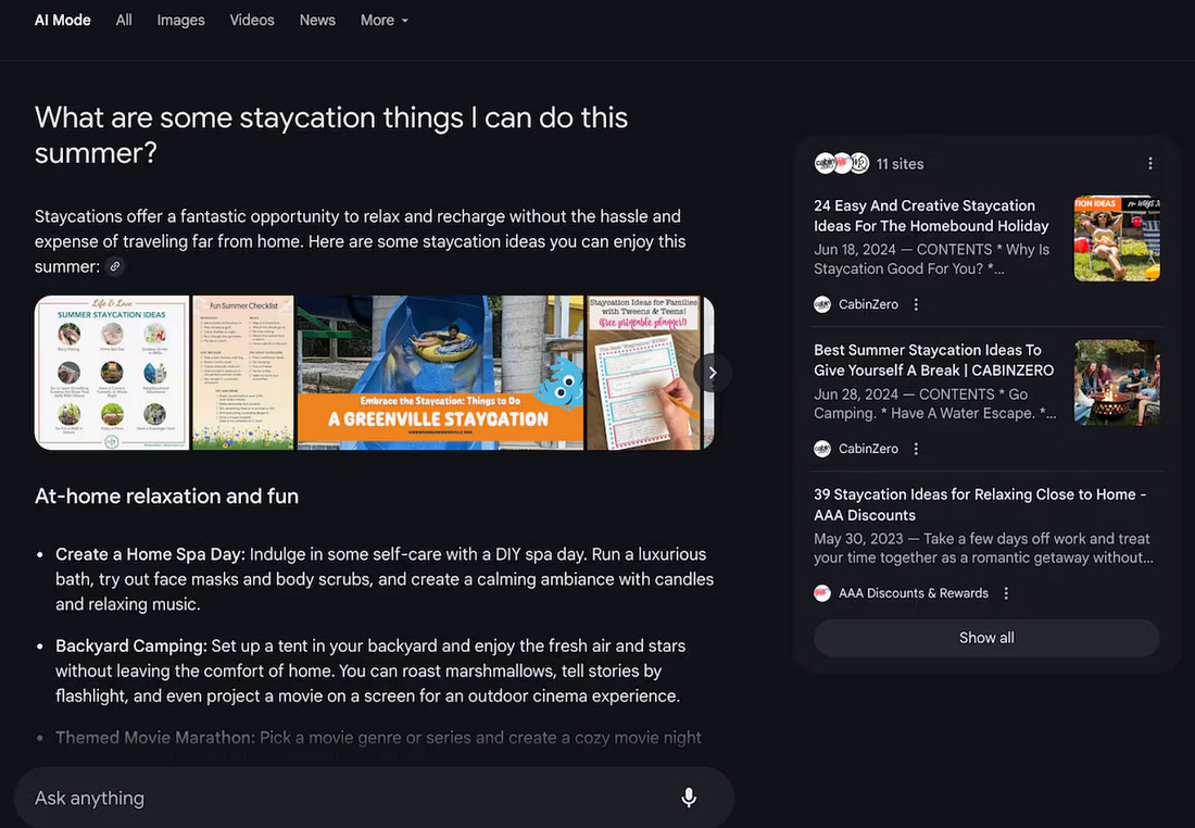 4 Google Ads enters AI modeGoogle is preparing to scale ads within its conversational AI search experience, marking a fundamental shift from keyword-based targeting to contextual conversation targeting. Google is briefing agencies and brands on how ads in AI Mode will function, targeting ads based not just on a user's query but on the entire context of the AI conversation. With over 100 million users already engaging in AI Mode and ads set to expand before Q4 of this year, travel brands that optimize for full conversation context, not just keywords, will be better positioned to reach high-intent travelers. Read + Search Engine Land