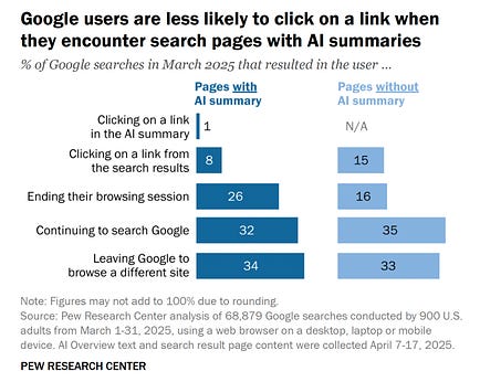 2. AI summaries are killing the clickNew data from Pew confirms that when Google shows an AI-generated summary, users are far less likely to click through. Across 900 tracked users, link clicks dropped from 15% to 8% when an AI summary appeared; clicks on the summary’s cited sources happened just 1% of the time. More users also ended their session entirely after seeing an AI overview. The most common sources were Wikipedia, Reddit, and YouTube. Overall, about one in five Google searches now includes an AI summary. Most summaries (88%) cite three or more sources, but those sources get very little traffic. Mention ≠ click. According to Propellic founder Brennen Bliss, AI summaries show up way more often than one in five for top-of-funnel searches like “best places to visit in winter.” Destination content is being scraped and summarized and traffic is dropping. Brennen is seeing smart travel marketers shift their strategy in three ways: 3. From layout to intentEric Schmidt believes traditional user interfaces are on their way out. The WIMP model (Windows, Icons, Menus, Pull-downs) was designed 50 years ago in Xerox PARC. In the age of AI agents, interfaces won’t be fixed; they’ll be generated on the fly, shaped by user intent rather than static design.