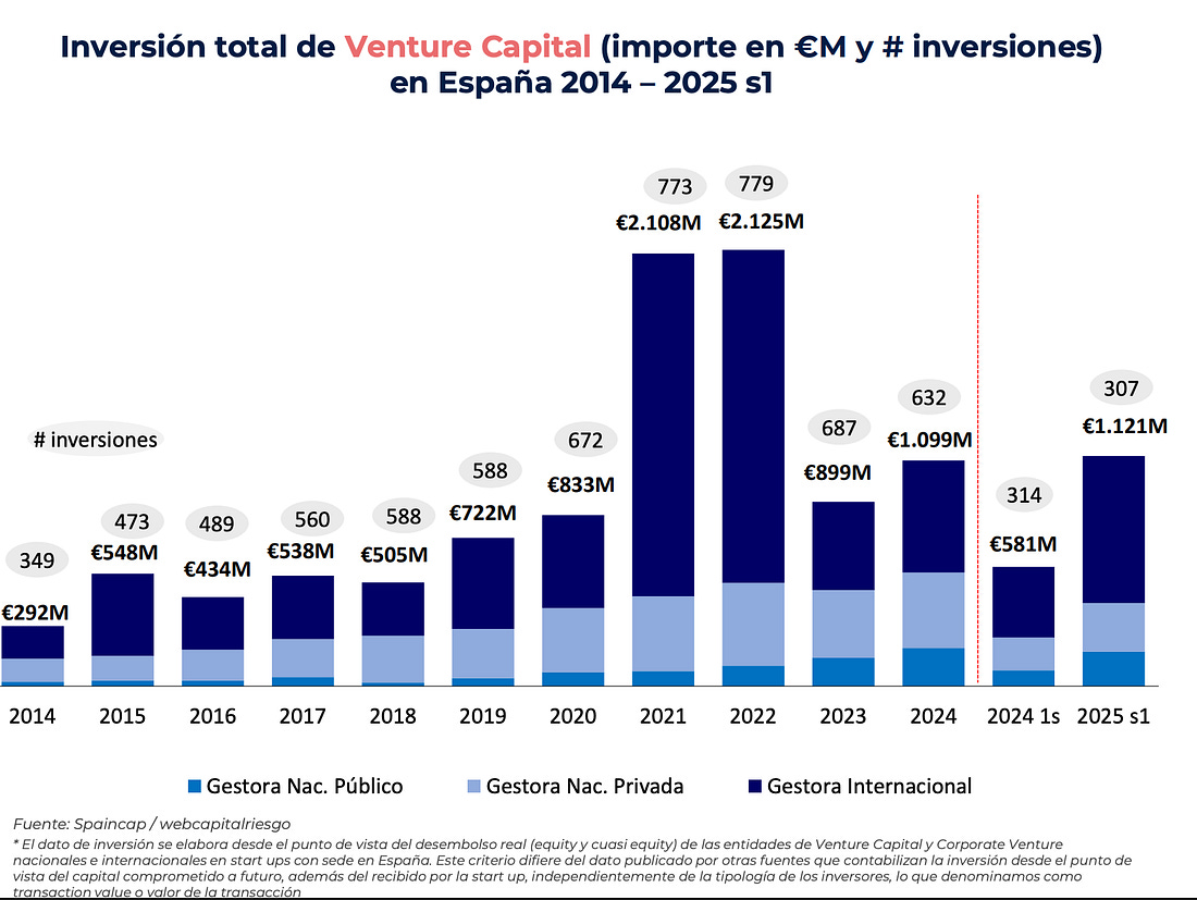 Cambio en la cúpula de Enisa: Borja Cabezón deja su puesto de CEO tras 18 meses. Le sustituirá Carolina Rodríguez (más de 10 años en la organización). Perfil de Bullnet Capital. 💻 Lanzamientos, fichajes y otras historiasLa patronal del capital riesgo hace balance del primer semestre (ver gráfico de apertura y más abajo): €1.120M de inversión con mucha más gasolina internacional pero sigue la escasez de exits (que no se espera que cambie a muy corto plazo). Wallapop contrata a a JPMorgan como asesor en el proceso de venta a Naver. El juzgado homologa el plan de refinanciación de €57M de Holaluz. Chema Alonso, exdirectivo de Telefónica, pasa a ser asesor de innovación e IA del comité de árbitros de la Federación de Futbol. Además entra en el consejo de Europa Press. Osapiens, alemana pero fundada por el español Alberto Zamora, se expande a UK con €35M de inversión. Nuuk, startup de movilidad eléctrica, entrega 800 motos nuevas a Correos. Entrevista al CEO de Innovamat. 🕴️ Gran empresa ‘tech’Dos de salidas: