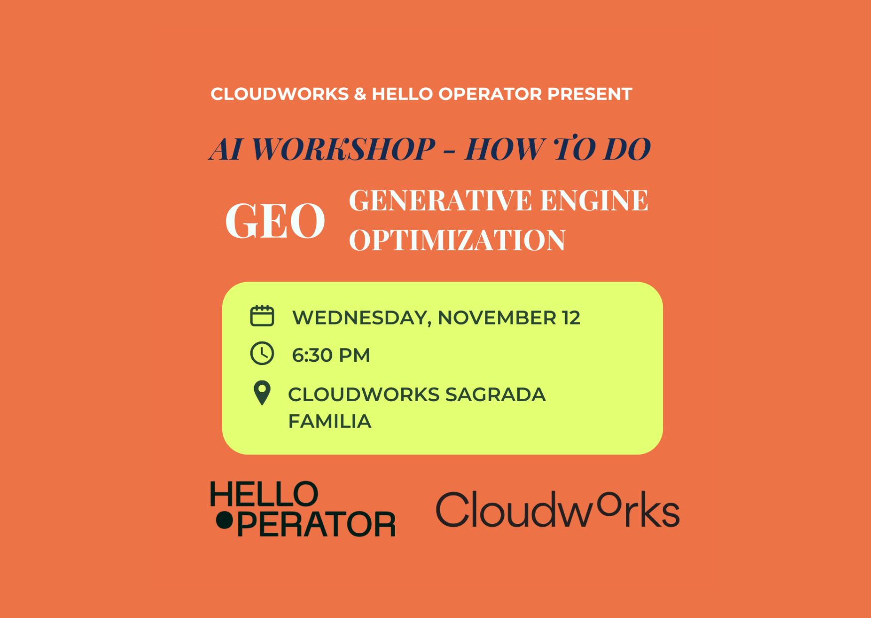 💻 Hosted by us at Hello Operator in collaboration with Cloudworks at their stunning Sagrada Familia location in Barcelona, this interactive session is built for founders, freelancers, marketers, and creators ready to future-proof their digital strategy. No technical background required!