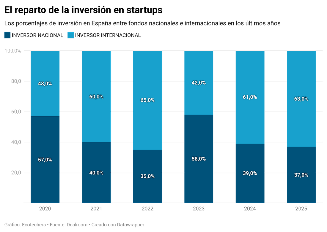 💻 Lanzamientos, fichajes y otras historiasLos fondos internacionales regresan a las cifras previas al ajuste ‘post-Covid’: alcanzan el 63% de todo lo invertido en los seis primeros meses, según datos de Dealroom, que desvelamos (ver gráfico de Ecotechers más abajo). ¿Cuánto tendrá la ‘Sepi digital’ de Wallbox? Supera el 11% de la compañía, que aprueba en junta el contrasplit de 20 a 1 para así evitar la salida de la Bolsa de Nueva York. Glovo vive una polémica en Italia: planteó un incentivo para que los repartidores trabajaran al aire libre durante la ola de calor. Acabó pausándolo tras la reacción, según el FT. Catalyxx busca €37M de deuda del Banco Europeo de Inversiones (BEI) para su primera planta de biobutanol en Francia. Levantó €3M de Axon en mayo. Dos de fintech: