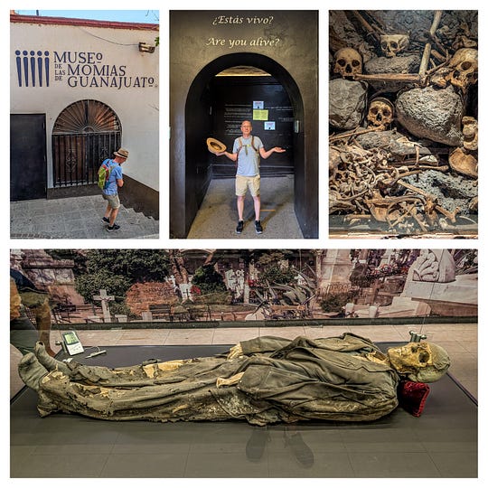 Daytrip: Guanajuato, Mexico — the Most Colorful City in a Very Colorful CountryEveryone said we should go. Did it live up to our expectations?This is a regular feature about “daytrips” — daytrips or weekend getaways — we’ve taken while living in different places around the world. If it’s featured here, that means we loved it! Welcome to “Daytrip,” a new feature profiling interesting “nearby” places we’ve visited while staying longer-term in different destinations around the world. Up first: Guanajuato, Mexico! Why We Went There 🧳 🗺️ 🤔We’re currently in San Miguel de Allende, Mexico, and before arriving here, neither of us had heard of Guanajuato, which is about 55 kilometers away. Right away, folks started telling us we had to go. And sure enough, we learned Guanajuato had been a UNESCO World Heritage Site since 1988; San Miguel de Allende didn’t get that listing until 2008. Several folks also said we should’ve chosen to live there instead of San Miguel because it was more “authentic.” Naturally, that piqued our curiosity. As a photographer, I was also intrigued because I’d heard Guanajuato is considered Mexico’s most “colorful” city: full of bright, distinctively painted buildings — and its location in a valley supposedly made those buildings look even more dramatic. Meanwhile, Brent was immediately all in when he learned about the town’s bizarre collection of “mummies” exhumed from a local cemetery — and also a strange network of tunnels underneath the city. The tunnels were the result of the city’s location in that narrow valley, which made it prone to terrible flash floods. After a series of floods almost wiped out the city, massive tunnels were dug to divert the water. Later, the construction of a dam eliminated the need for flood control, and the tunnels were converted into roads now used by both cars and people. The Guanajuato Quickstart 🏃♂️🚀⚡“Guanajuato” is both a city and the capital of the state of Guanajuato. That means technically the town is Guanajuato, Guanajuato, which is — forgive me for saying so — kind of confusing. But most of the time, when you hear someone mention Guanajuato — pronounced “Gwah-nah-WAH-toh” — they’ll be referring to the city. Guanajuato (the city) is also commonly abbreviated “GTO,” much like “SMA” is used to refer to San Miguel de Allende. The area was home to lots of mineral deposits, especially silver, which first drew indigenous tribes, including the Aztecs. In the 1540s, the Spanish set up forts to wrest control from the indigenous peoples — and then established Guanajuato as an official town in 1548. There was so much silver in the nearby mountains that the Valenciana Mine alone accounted for two-thirds of all the silver the Spanish hauled back to Spain during the nearly 300 years they controlled Mexico. Today, Guanajuato has a population of 200,000, including 30,000 students attending the University of Guanajuato. What We Did 🏰🎭🚶♂️📸Brent and I made the trip with our friend Claire (who writes Wonder, Wander, Write) and her husband Daniel, and upon arrival, we all soon realized that while GTO and SMA have about the same population, this town feels smaller — because so much of the city is squeezed into that narrow valley (and also maybe because there are so many students). However, this also makes it easier to explore the city’s offerings. You could see a lot of it in a day, but we decided there was enough to do to spend two nights and three days. At Brent’s insistence, one of our top priorities was the Museo de las Momias, or Mummy Museum ($7.50 USD). It’s a collection of 111 bodies exhumed from a local cemetery between 1861 and 2002, when families could no longer afford the required burial tax. So much for perpetual care, amirite? The bodies were mummified because of the area’s very arid climate and the naturally salty soil. Most are even still dressed in the now-ratty clothes they were buried in. Today, the museum is the number one attraction for Mexican tourists visiting Guanajuato — maybe not surprisingly, since it fits pretty seamlessly into the country’s “Day of the Dead” traditions and general fascination with dead ancestors. Brent loved it: the mummies, which are genuinely fascinating in their own right, but also the kitschy businesses surrounding the museum. It’s treated exactly like the major tourist attraction it is. There’s even a cheeky haunted house connected to the museum using actual bones from the graves! That kind of irreverence would never fly in America — we have different irreverencies! — and Brent was enthralled by the very obvious cultural differences. As for me, seeing all those actual dead bodies — including children and babies! — gave me the heebie-jeebies. Claire and Daniel also had no interest in visiting. If you’re at all squeamish, you should probably give this a pass. Creating this newsletter takes a lot of time and effort, so half of our posts are for paid-subscribers only, including this article. But here is a special offer to get an annual subscription — giving you access to the rest of this article and also everything else we’ve written — at 40% off, $30 USD/year (or $2.50/ month) for as long as you continue subscribing: