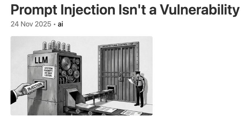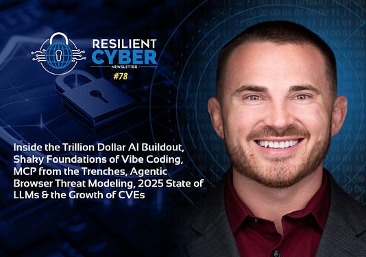 Resilient Cyber Newsletter #78Inside the Trillion Dollar AI Buildout, Shaky Foundations of Vibe Coding, MCP from the Trenches, Agentic Browser Threat Modeling, 2025 State of LLMs & the Growth of CVEsWelcome!Welcome to issue #78 of the Resilient Cyber Newsletter. This is the first official newsletter release of 2026. I hope everyone had a great break for Christmas and New Years with friends and family and is as recharged as I am to hit 2026! I’ve got a lot of great resources and discussions to share this week, including a comprehensive breakdown of the trillion dollar AI buildout, growing concerns about the sustainability of vibe coding, a deep dive into the state of MCP in the enterprise and a look at threat modeling the rise of Agentic browsers. All this and more this week, so here’s to an amazing 2026, where AI will inevitably continue to shape not just cybersecurity but the entire software ecosystem. Interested in sponsoring an issue of Resilient Cyber? This includes reaching over 40,000 subscribers, ranging from Developers, Engineers, Architects, CISO’s/Security Leaders and Business Executives Reach out below! Cyber Leadership & Market DynamicsAI-Orchestrated Cyber Espionage and the Future of Cyber DefenseAnthropic’s report of AI-orchestrated cyber espionage made headlines recently, and that includes catching the attention of those in the U.S. Government, at agencies such as CISA. In this discussion with Nick Andersen the Executive Assistant Director for the Cyber division within CISA, Nick discusses the role of AI and its impact on both cyber offense and defense and how CISA and the Federal government is thinking about the future of cyber defense. Jevons Paradox for Knowledge WorkWe've heard a lot this year about the role of AI and its impact on knowledge work, the labor market and employment. This is an anteresting piece from Aaron Levie, CEO of Box, where he states when discussing AI and Agents many overemphasize the “R” of ROI and under-examine the “I”. Satya Nadella describes how lessons from Microsoft’s history apply to today’s boomAs I mentioned, I’ve been using time during the holiday break to catch up on some great conversations I had saved and queued up. Among them was this wide ranging interview with Microsoft’s CEO Satya Nadella. Satya goes through a lot of great topics, from Microsoft’s history to the current AI boom and everything in between. What I was fascinated by was Satya’s range, as he navigated from complex technical topics to business and financially focused aspects of the conversation, but I suppose that’s why he leads one of the most dominant tech giants in the world! AIInside the Trillion Dollar AI BuildoutI used Christmas/New Years break to catch up on great discussions I had saved. Among them was Dylan Patel’s interview about all things AI. While the title does focus on the massive capital intensive AI buildout, Dylan touches on way more than just infrastructure buildouts, covering topics ranging from coding, talent wars, competition among the model providers and way more. Dylan is easily one of the most knowledgeable and informative folks to follow on all things AI. Prompt Injection - Vulnerability or Not?ne topic that has led to a lot of debate in recent months is whether or not Prompt Injection is a vulnerability in LLMs or not. Groups such as OpenAI have openly said it is likely never to be solved and we continue to see countless examples of security researchers and product vendors trying to dunk on AI products by doing direct and indirect prompt injection attacks. Vibe Coding Leads to Shaky FoundationsThat’s one of the takeaways from Cursor’s CEO’s comments recently to Fortune. In 2025 we saw the rapid rise of “Vibe Coding” as the development community, much to the dismay of cybersecurity, leaned into AI coding tools and just implicitly trusting outputs. That said, the term also became a catch-all, and mistakenly used to refer to any AI-driven development, even when being wielded by highly proficient developers with deep domain expertise. Planning a Successful AI Rollout in CybersecurityThere’s been a lot of stories of problematic AI rollouts across enterprise environments. Cybersecurity isn’t immune from botched rollouts either, which is why I found this piece from Alain Mayer and David Seidman to be a good one. They lay out key concepts and a structured approach to rolling out AI in Cyber, including: