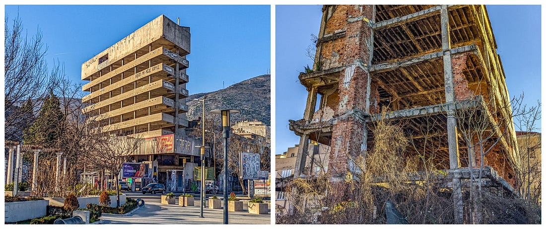 This is a regular feature about “daytrips” — daytrips or weekend getaways — we’ve taken while living in different places around the world. If it’s featured here, that means we loved it! Welcome to our second installment of “Daytrips.” Last time, we took you to Guanajuato — “the most colorful town in Mexico.” Now we’re writing about a darker place that, almost four years later, haunts us still. It’s Mostar, Bosnia and Herzegovina (one country with two names), and it was the site of much conflict and bloodshed during the Bosnian War that followed the breakup of Yugoslavia back in the 90s. But if the buildings are less colorful than in Guanajuato, Mostar is no less beautiful — and just as worth visiting. Why We Went There 🧳 🗺️ 🤔We’d been spending the winter of 2021-2022 in Split, Croatia, and after two months, we’d seen most of what the Split area had to offer. Friends mentioned that Mostar, in the neighboring country of Bosnia and Herzegovina, made a good weekend getaway. Like Guanajuato, we didn’t know much about Mostar, but we’d at least heard of it, even if what we’d heard involved a lot of tragedy. Our friend Vicki — a fellow nomad who happened to be living in Split at the time — suggested we all take an overnight trip. Brent and I were immediately in. The Mostar Quickstart 🏃♂️🚀⚡Mostar’s name comes from the word “mostari,” which means “bridge keepers,” a reference to the guards who once protected Stari Most, the city’s famous bridge. “Stari Most” means “Old Bridge,” and the name had me wondering what the locals called it back in the 16th century when it was new. Just “Most”? Ironically, the bridge you see today is also new — a recent reconstruction. But more on that in a bit. If you’ve ever seen a picture of Mostar, it’s almost certainly of Stari Most. Along with Mostar’s Old Town, it’s a UNESCO World Heritage Site, and also the site of a famous bridge-diving competition. The city is divided by the Neretva River, famous for its deep green color, caused by the limestone and carbonate particles suspended in the water. It’s also the coldest river in the world — something we didn’t believe at first. A year or so later, I rafted it, and now I know for a fact it’s true. This region has been inhabited since prehistoric times, but the Ottomans took control in 1468 and began to build the city that exists today. The Ottomans coveted Mostar due to its strategic location as a trading hub between East and West, and soon traders passed through carrying spices, jewels, textiles, and more. Four hundred years later, the Austro-Hungarians took control. That was followed by two world wars, Mostar’s absorption into Yugoslavia, and finally the devastating Bosnian War of the 1990s. So… yeah. Lotta history here. Today, Mostar has a population of about 105,000, and it’s known for its blend of Ottoman, Mediterranean, and Western European architecture. Plus, young men who jump and dive from the top of that legendary bridge because, well, young men. Mostar is also relatively new to the “mass tourism” scene, which means it’s extremely affordable and you’ll be welcomed with open arms — unlike much of the rest of Europe. What We Did 🏰🎭🚶♂️📸We visited in January, so it was fairly chilly, but it also meant we had the town nearly to ourselves. Stari Most is the city’s most famous attraction, and it was an architectural marvel when it was unveiled in 1566 — the widest human-made arch in the world. In fact, legend says that Suleiman the Magnificent, who commissioned the bridge, declared that he would execute Mimar Hayruddin, the bridge’s architect, if the structure did not continue to stand once the wooden supports were removed. The day before that happened, Hayruddin — not at all confident in his innovative design — was said to have made his own funeral arrangements. Spoiler alert: the bridge stood. During the Bosnian War, the structure literally bridged the divide between the two warring sides of town. Finally, Croatian forces aimed their artillery right at the bridge and destroyed it. Eight years after the war, construction began on a new bridge meant to mimic the original. But word is, modern engineers never fully understood Hayruddin’s revolutionary design — and the builders also didn’t follow the advice of the other local legend, that the original mortar had been made using egg yolks. Stari Most had little military value, but man, what a symbolic blow, severing the connections between the Muslim and Christian sides of the city. Another reminder of Mostar’s bloody past is “Sniper Tower.” It was formerly a bank and the tallest building in Mostar. But during the Bosnian War, the tower gave Croat snipers an almost perfect line of sight into the Bosniak, or Muslim, side of the city. During the two sieges of Mostar, the snipers were very effective in killing and terrorizing people on the opposite side of the river. It still stands, dominating the city — in part, because the city is too poor to restore all the damage from the war, and in part because it’s a kind of tourist attraction (although you’re not supposed to go up). It’s also an extremely haunting memorial to what happened here. Almost everywhere you go in the city, there are more reminders: bullet holes, bomb damage, and even the ruins of destroyed buildings. These all act as monuments too. These days, Stari Most has been rebuilt, but much of the city’s old divisions remain. Before the war, the city included mixed neighborhoods of Bosniaks, Croats, and Serbs. Today, the Serbs have largely left, and Bosniaks live on the east side of the river and Croats on the west. The city is too poor to build multiple schools, so instead Bosniaks go to school for one part of the day, and Croats use the same classrooms in a different part of the day. In 2013, a monument was erected in honor of Bosniak soldiers.