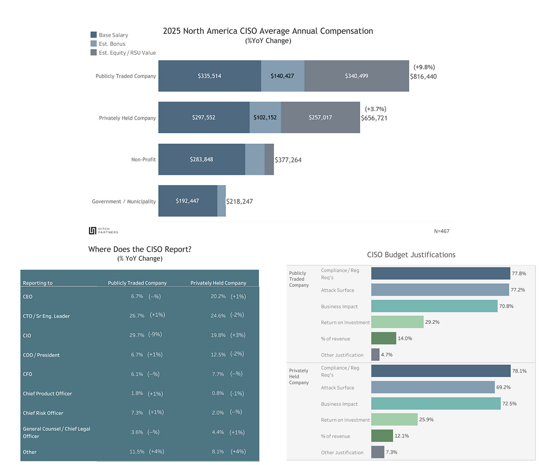 Cyber Leadership & Market DynamicsHitch Partners 2025 Security Organization Compensation, Responsibilities, and Structure Survey ResultsIf you're like me, you're always looking for insights into CISO and security leader compensation, responsibility trends, and reporting structure insights. Some key takeaways: