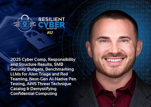 Resilient Cyber Newsletter #522025 Cyber Comp, Responsibility and Structure Results, SMB Security Budgets, Benchmarking LLMs for Alert Triage and Red Teaming, Next-Gen AI-Native Pen Testing & AWS Threat Technique Catalog