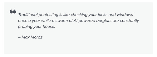 The article covers some of the traditional categories of Pentesting tools, with some examples (notice the emphasis on open source). It also discusses the typical pentesting phases from reconnaissance through reporting. It discusses why traditional pentesting is no longer enough, due to factors such as mounting unpatched vulnerability backlogs, growing numbers of CVEs, and complexities in modern environments due to Cloud, DevOps, and SaaS. I particularly liked the below quote from Max Moroz as it summarizes not just pentesting but the current state of compliance in Cyber too, which is a snapshot-in-time model with cyclical reviews and assessments, when the threat is constantly changing as well as the underlying environments being assessed. The article makes the case that pentesting of the future will shift from labor-constrained engagements to scalable AI-native systems able to match the pace of modern development through the combination of LLMs, traditional exploit tooling, real-time telemetry, and proprietary data (which is the actual moat in my opinion). The overarching theme is a model that isn’t constrained by expertise, labor, and expenses but software-first, continuous, and AI-augmented systems. They call out some of these in a market map. The article goes on to argue that AI will rewrite the pentest playbook as it thinks like a hacker, trained on real-world exploits, codebases and system behavior to identify flaws in business logic, will shorten testing cycles as it can be run continuously, aren’t constrained to legacy scopes due to human staffing and will focus on verifiable exploits as opposed to noise. While much of this remains to be seen, I certainly think AI will disrupt pentesting much like it will the broader cyber ecosystem as we lean into this technology to take advantage of it much like attackers already are. The piece does discuss limitations such as constrained depth and context that some human expertise may bring where AI tooling is still evolving, as well as problems around accountability. Shout out to folks such as Jason Haddix, who's also cited. Threat Technique Catalog for AWSAWS remains one of the most dominant CSPs in the world, where organizations store and run critical and sensitive workloads. This Threat Technique Catalog for AWS describes techniques used by threat actors to take advantage of security misconfigurations or compromised credentials on the customer side of the shared responsibility model. It’s also based on MITRE ATT&CK. They map to AWS CloudTrail Event Names when malicious actions are logged in CloudTrail and can be used to assist during incident response and investigations. Users can navigate through the various phases and lifecycle of attacks and dig into the specific techniques, such as “Account Manipulation,” and see the technique’s ID, how it can be detected, and how it can be mitigated. Publish Your Threat Model?To many, publishing threat models, risk assessments, and other potentially sensitive artifacts that may be useful to attackers seems like blasphemy. However, Adam Shostack of Threat Modeling fame makes the case that it is exactly what we should be doing. In addition to an essay arguing for the practice, Adam points to emerging compliance requirements, particularly from the compliance juggernaut, the EU, that may require it. The Cursor Moment for SecOps: How MCP and AI Coding Agents are Enabling the Next Evolution of Detection EngineeringJack Naglieri continues to post thought-provoking content about the role of AI, Agents, and MCP and its implications for the future of SecOps. His latest piece is no exception. He discusses the current state of manual detection engineering and the traditional detection engineering process, including how cumbersome and time-consuming they are. He discusses how a significant paradigm shift can occur by connecting your SIEM with leading AI tools via MCP such as Cursor, Claude, Goose, or others and asking questions about unusual patterns, insights into logs, user behavior, and more. The days of manually combing through logs and system data are quickly moving behind us as we pivot to using natural language and AI to gain insights that weren’t impossible without massive human capital. Jack walks through a practical example of having AI analyze CloudTrail logs and product reports related to activities impacting service roles, access attempts, changing IAM permissions and other potentially concerning activities. Jack discusses how MCP can function as a glue, connecting various platforms and tools within the same AI session, such as your SIEM, ticketing system, on-call rotation tooling, Slack channels, and more, into a single thread to ensure we move from signal to outcomes in the security context of mitigating organizational risks. Ironically, MCP and AI create the ever-elusive “single pane of glass”, weaving together insights across tools and platforms, minimizing the need for context switching and overload for security practitioners and analysts. Jack discusses the time savings and multiplier effects of the new AI-augmented workflow for detection engineering, offering strategic and tactical improvements to the practice. This Is How They Tell Me Bug Bounty EndsWe continue to see the rapid exploration of the art of the possible when it comes to AI, including cybersecurity use cases such as Offensive Security/Pen Testing, as I discussed above. We’ve seen promising startups such as Xbow and Ethiac demonstrate the power of automated, autonomous, AI-powered pen testing. That said, as Joseph Thacker lays out in this thought-provoking piece, the disruption to bug bounty and offensive security more broadly is likely to happen gradually rather than immediately. He discusses how these emerging tools and companies are able to find 1% of vulnerabilities on live production applications, typically simple single-step verifiable bugs, but that will grow in time to larger percentages and more complex b