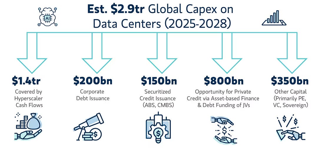 The dot-com bubble is the archetype. Companies with no profits at all floated at triple-digit multiples, some raising more on IPO day than they would ever earn in revenues. Boo.com raised $135 million from investors, including LVMH’s Bernard Arnault, and pitched itself as the “Amazon of fashion.” The site launched in 18 countries with localized language and shipping, with a virtual avatar, “Miss Boo,” who gave shopping tips on 3D models. It spent $25 million on advertising before launch, ballooned staff from 40 to 400, and opened plush offices across New York and Europe. The JavaScript- and Flash-heavy website was nearly unusable on dial-up connections, incompatible with Mac computers and buggy. One in four attempted purchases failed. Despite the extravagance – lavish parties, Concorde flights and celebrity stylists for Miss Boo – polls showed that just 13% of internet users knew the brand existed. Within 18 months, the money was gone. Boo.com collapsed in May 2000.¹⁰ What’s going on in genAI does not compare to this. The key measure here is the price/earnings ratio (P/E), a shorthand for how many years of current profits an investor is effectively paying for. If a company has $1 in annual earnings and trades at a P/E of 20, buyers are paying $20 for each dollar of current profit, assuming growth will make that worthwhile. A high P/E means companies are betting on rapid future growth, but too high, for too long, investors might be buying into a fantasy. This was the case in the dot-com era. At the peak, the Nasdaq traded at a P/E of about 72. One detailed study estimated that internet stocks alone carried an implied P/E of 605. In other words, investors were willing to pay for more than six centuries of current earnings. The issue wasn’t that demand disappeared – Amazon’s revenues grew from $2.76 billion in 2000 to $3.12 billion in 2001 – but that no company could grow fast enough to justify those sky-high expectations. The fundamentals improved, but expectations collapsed. Today, the picture is much calmer. The Nasdaq P/E is about 32, half that of the dot-com era. The broader tech market is higher than the long-run average, but nowhere near dot-com territory. Compared to the railroad bubbles, which had an estimated P/E of around 20, it is high. But the railroads ended badly, not because valuations were extreme in themselves, but because revenue growth faltered. By contrast, genAI revenues are still accelerating rapidly. Another indicator of valuation excess that many investors pay attention to is the so-called “Buffett Indicator”, which measures how far ahead of GDP equity market valuations have risen. There is no doubt that this indicator is peaky, well above a two-standard-deviation anomaly that often presages market corrections. We are more sanguine, for the moment. History rhymes; it doesn’t repeat. The Buffett indicator relies on GDP, and GDP is famously bad at capturing technological productivity gains. In addition, a large portion of big tech revenues comes from outside the US, decoupling their earnings from domestic GDP. Finally, AI-based productivity may affect margins – keeping output (and GDP constant), while increasing corporate profits. So while we keep an eye on the Buffett indicator (and its distant cousin, the Shiller CAPE ratio), we feel the different dynamics of an accelerating digital economy are not well captured by them. So how hot is this gauge? My verdict is green. Prices haven’t yet broken free of gravity in the way dot-com valuations did. Gauge 5: Funding qualityFunding quality is not a standard metric but a composite judgment. It asks who the money is coming from, how it is structured and whether the capital is willing to wait years for returns or rather chase quarterly pops. Low-quality capital, in short, is short-termist, undisciplined and debt-laden; it rushes and flees quickly. High-quality capital is more patient, better underwritten, and able to withstand volatility. Every bubble has its signature weakness, invariably rooted in how it was financed. Railways were fueled by speculative retail investors with little capital behind them. By the early 1870s, funded debt averaged 46% of total assets among American railroads; when overbuilding met a credit squeeze, financing evaporated. The Panic of 1873 sent rail lines into receivership. Dot-com firms, a century later, were a little sturdier. Venture capital was a boutique business in 1995, with only $5.3 billion deployed. By 2001, more than $237 billion had been poured into startups, often by new and inexperienced managers. The frenzy spilled into public markets: IPO volume between 1999 and 2000 ran six times above historical averages. Companies went public with little revenue. Two of my friends took theGlobe.com public in 1998 and enjoyed a 606% share-price pop the day they went public. Telecoms in the late 1990s leaned on mountains of cheap debt. US and European carriers doubled and quadrupled their leverage in just a few years. Deutsche Telekom and France Télécom together added $78 billion in net debt between 1998 and 2001. When revenues failed to keep pace, defaults rippled through the sector. In each case, the capital that fueled the boom proved ephemeral. But the degree of fragility differed. Railways and telecoms were most exposed to credit crunches, with debt ratios ballooning. Dot-coms were hostage to market mood, with equity values evaporating. On this front, today’s AI boom looks sturdier. Microsoft, Amazon, Alphabet, Meta and Nvidia are minting extraordinary cash flows, easily enough to bankroll their own build-out. For now. But investment needs are racing ahead. Morgan Stanley reckons total global data center capex will hit $2.9 trillion between 2025 and 2028. Hyperscalers can cover perhaps half of that from internal cash. The rest must come from private credit, securitized finance and new operators. Governments have also pledged $1.6 trillion in sovereign A