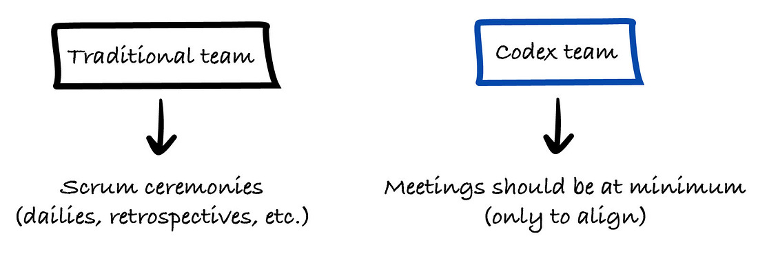 That kind of full ownership is strongly encouraged on the Codex team. Most ideas also come bottom-up, driven by people on the team getting excited about trying something new. They also work very closely with research teams. Often, they’re inspired by new research directions or things they know are coming, and they build ahead of time, whether that’s foundational infrastructure or new product experiences. It’s overall a very creative process for them. No one has fully figured out the right way to supervise and steer agents yet, and the Codex app is just one expression of their thinking. Their process also contains a lot of experimentation and ideation. Not everything ships, but people are encouraged and rewarded for exploring new ideas, and they only launch the very best ones. They keep things very lean and minimize meetings as much as possibleWhen meetings do happen, they’re usually spontaneous and driven by real needs. The office is set up to encourage in-person collaboration, and the leadership team makes itself extremely available so issues can be resolved in minutes or hours at worst. They make decisions very quickly. The cost of making mistakes is much lower because Codex is always available. They can try things, observe what happens, and change course fast if needed. As a result, they optimize heavily for speed and velocity. A lot of the processes that worked a few or even two years ago just don’t scale anymore, so they’ve essentially reinvented how they work. The onboarding buddy for new engineers on the team is CodexThis is what I have already mentioned in the article: How to Build AI-Native Engineering Teams. Thibault shared that Codex walks new hires through onboarding, sets up their entire computer, and helps them understand the codebase, projects, and existing features. It basically acts like a highly skilled engineering mentor. From initial setup to being productive, most of the onboarding process is handled by the AI tool. As a result, onboarding is much faster than it used to be. At OpenAI, they also have a strong culture of shipping on day one. It’s really important for every engineer to provide value as soon as possible. Normal traditional teams have the goal to ship code to production within the first week. In their team, that should be on the first day. With that kind of culture and systems in place, new hires can arrive with no prior context, quickly understand the system, and ship meaningful features on their first day. Now, let’s go to the part on how they leverage AI to be productive. How Codex team uses AIThey use Codex internally for basically everything. They’ve built a lot of custom skills that are specific to developing Codex itself. For example, one skill lets Codex run full QA on its own builds. When they ship a new CLI build, Codex can check different features and verify that nothing broke. Internally, they also use sub-agents a lot. It’s still an experimental feature, but they rely on it for massive parallel testing and for large-scale refactors. On the planning side, Codex is connected to tools like Linear, Notion, and Slack, which help them collect and synthesize user feedback much faster. Their feedback channels are extremely active, especially the Codex one. It’s hard for any human to keep up. Codex summarizes the daily themes and helps engineers prioritize what to work on next. If you walk around the office, you’ll see Codex on almost everyone’s screen. It’s editing videos for YouTube, prioritizing Linear tickets, and running large refactors, such as their recent Python-to-Rust rewrites. Codex is absolutely central to how they work. Codex automatically reviews all pull requestsThey’ve set Codex up with custom instructions so it enforces very specific standards. It’s making sure the right structures are followed, module boundaries are respected, semantics are correct, and coverage meets the bar they’ve set. All of that happens automatically on every PR. On top of that, they do a lot of local code review with Codex as well. Engineers can run a simple “review” command and iterate on it in a loop. With sub-agents, this has become even more common, as people will often have multiple sub-agents review a PR before it’s ever shared. This process regularly surfaces small issues and improvements they would have otherwise missed. A lot of time also goes into maintaining a healthy, well-structured codebase so they can keep moving fast over the long term. What they’ve learned is that without the right guardrails and structure, it’s easy to drift in the wrong direction and eventually slow yourself down. Codex helps them keep quality high while still accelerating. How they structure their prompts to use AI effectivelyOf course, the Codex team uses Codex, but in your case, you can use your AI tool of choice, and Thibault’s recommendation is to start with the following.