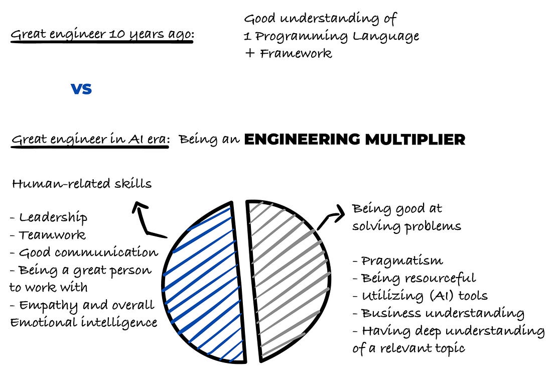 An engineering multiplier doesn’t just ask, “What can I build?”, they ask, “How can I make everyone around me more effective?”. Now, let’s talk about how important being a multiplier is. It’s Becoming More and More Important For Engineers to Become Multipliers in the AI EraThis is what I already mentioned in this article: