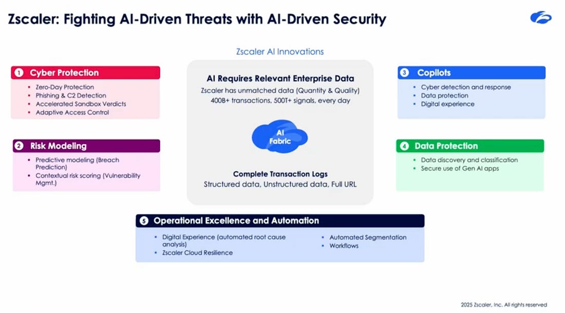 Closing ThoughtsAs I opened the article, many have been curious to see how one of the security industry leaders in Zscaler was going to approach AI Security. That answer is here now, as they bring their deep expertise in Zero Trust to the world of AI, launching AI Guard, to help organizations Discover, Manage and Secure their AI Footprint. This includes focusing on key areas such as enterprise applications and models, and potential risks across access control, data, workloads and more. The acquisition of SPLX and integration into their approach lets them utilize automated red teaming across some of the most popular AI platforms and providers to take a threat informed approach to defending enterprise environments and bolstering security postures across AI ecosystems. Zscaler will definitely be one of the major players in the space to keep an eye on moving forward as we see AI adoption continue to mature and evolve due to their unparalleled telemetry, existing coverage and capabilities, ability to execute and now building on all of that to specifically focus on AI security. You're currently a free subscriber to Resilient Cyber. For the full experience, upgrade your subscription. |