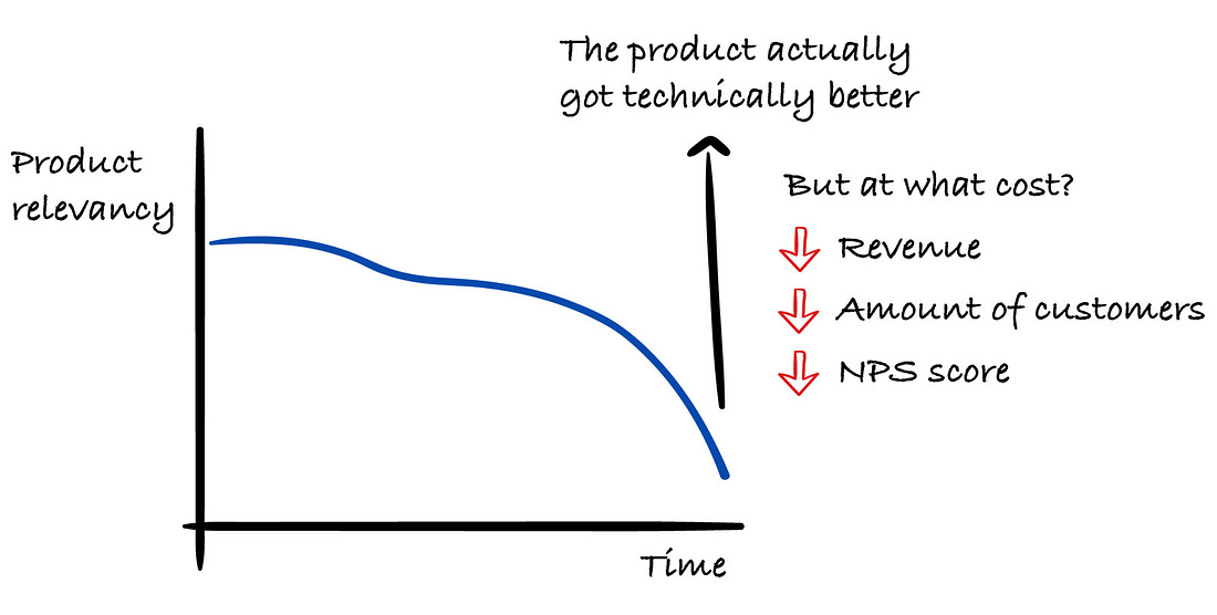 As a leader, where your team looks is where your product goes. The Pull Toward Code is StrongWhen I was an engineer, solving hard technical problems was addictive. I could get lost in architecture decisions, database optimizations, elegant abstractions. It felt like progress. And sometimes, it was. But more often than I care to admit, I spent hours perfecting things that never created value for the customer. That’s the trap. We fall in love with the challenge itself → getting the architecture right, solving edge cases, refining the flow. It’s satisfying work, but without the user in mind, it often becomes aimless. It’s not wrong. It’s just incomplete. The system trains us this way. Most engineering performance reviews praise clean commits, not customer impact. Most processes reward sprint completion, not user outcomes. And most cultures treat technical exploration as progress, regardless of whether it solves a real problem. I once had an engineer tell a customer, "It’s all documented." Technically, he was right. But the customer couldn’t figure it out, and didn’t care how elegant our docs were. They just wanted their problem solved. That engineer wasn’t lazy or unhelpful. He was doing what we’d trained him to do: protect the code, not understand the customer. Engineers don’t drift inward because they’re misaligned. They’re often deeply motivated, just by the wrong signals. Code gives instant feedback. The logic is clean. But that’s also what makes it easy to lose weeks solving the wrong problem. We don’t default inward because we’re bad at product thinking. We default inward because it’s safe, measurable, and rewarded. But it’s also how we lose focus. The Cost of Focusing Too Much on the CodeI’ll never forget the time we launched a big feature at Stackify. Everything went perfectly. No errors. No incidents. Deployed on time. And then… silence. No feedback. No impact. No one even noticed. That silence should have scared us more than any bug report ever could. We’d built something we thought users needed. But we hadn’t checked. We hadn’t watched them struggle, listened to their problems, or tested our assumptions. We built it because we could. And when teams operate in that same pattern over time, the symptoms get worse. Output increases. But outcomes stall. Burnout rises. Engineers start to disconnect. It becomes easier to hide inside the system, to retreat into the backlog or cling to completion metrics. But it’s harder to feel proud of the work. We confused shipping with success. And that’s a pattern I’ve seen at every level of engineering. Fast teams who deliver constantly, but don’t learn. Burned-out engineers asking, "Why are we even building this?" Roadmaps full of features that sound good on paper but solve nothing in the real world. At some point, your team stops caring about the impact. They go heads down. They focus on the requirements and stop asking questions. This isn’t just burnout from pressure. It’s what happens when teams lose sight of the customer. They start perfecting the system instead. The Slow Death Spiral of Focusing Too Much on the CodeNot every team burns out from chaos. Some burn out in comfort. You fix the architecture. You improve test coverage. You reduce tech debt. The work feels responsible. Safe. Even strategic. But over time, the team’s direction narrows. They stop asking what the customer needs and start asking what the system needs. The roadmap becomes a list of improvements to itself. Innovation disappears quietly. Curiosity dims. Teams lose their edge without realizing it. Eventually, you ship fewer features. Not because the team is lazy. But because they’re busy polishing a system that no longer moves the product forward. You get a more maintainable platform, just not a more valuable one. That’s the slow death spiral: A product that gets technically better, while becoming less relevant. And if you don’t interrupt it, you wake up one day with a team that’s excellent at maintenance… but unable to build anything new. I describe this as the sideways drift. You’re not moving forward → you’re moving sideways. It might feel stable, even productive. But while your team is polishing and refining, your competitors are shipping, learning, and evolving. Over time, sideways becomes backwards. The industry moves ahead, and you’re left maintaining a product that’s no longer leading, just surviving. What Happens When Teams Look Toward CustomersNow contrast that with a team that looks outward. I’ve seen this shift happen at Full Scale with the engineers our clients rave about. They’re not just fast or skilled. They ask better questions. "Who’s this really for?" "What are they trying to do?" "Why did they click there?" They challenge vague tickets. They bring context into conversations. They care not just about correctness, but usefulness. Their code is still good. But their judgment is better. And that’s what makes the difference. It’s easy to measure output. But product judgment is the multiplier. The ability to know what to build and why it matters is the highest-leverage skill in software. I’ve also seen what happens when engineers get exposed to even a single user session. It changes how they think. They start noticing friction. They connect their decision-making to real-world behavior. And often, they feel something else too: responsibility. Not just to build something correctly, but to build something that helps. You still want engineers who care about their craft. But if you want them to build great products, they have to start with the customer, not the code. Your Job As a Leader Is to Lead the ShiftThis isn’t something you fix with a new process. It’s not about running more customer interviews or tweaking your agile board. It’s about what you normalize. What you praise. What you question. If you start meetings by asking "What’s the status?", your team will opt