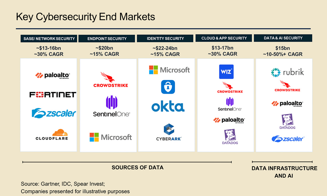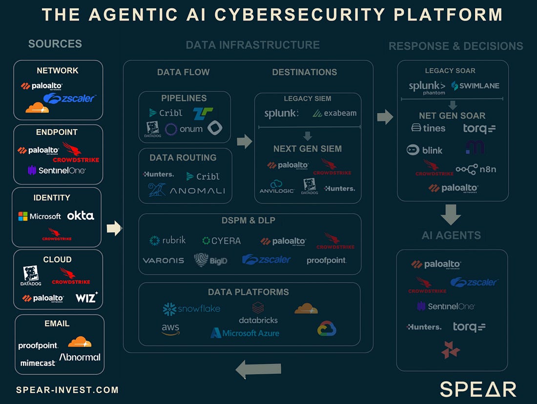 I always enjoy sharing the below diagram as a stark reminder of just how different the US and EU ecosystem for growth and high-tech are: The Rise of the Agentic SOCThe industry continues to be enamored by AI's potential to transform cybersecurity, including in key areas such as SecOps with the SOC. This piece from Spear Investments explores the topic, looking at technical and market factors driving this focus. The piece emphasizes what is foundational to Agentic SOC operations, which are the data sources and data infrastructure layer. As seen in the image above, this is no small feat and often involves a complex combination of systems, products, and environments to bring things together. As the authors point out, the modern SOC isn’t a static dashboard, but instead a system built on robust real-time data sources providing actionable insights, and can come from sources such as the network, endpoints, identity, and cloud environments. The industry leaders, such as Crowdstrike and ZScaler, have a significant advantage when it comes to data, given each protects billions of digital assets and/or processes billions and even trillions of transactions, providing them a massive data set to drive higher fidelity insights and even further train models tied to products. This data “moat” is a point the CEO of Horizon3AI, whom I respect, has often cited as key. From an investor’s perspective, each of these areas of the cyber market has and continues to see double-digit growth annually, as depicted below: The piece goes on to break down each of these key cybersecurity end markets, leading vendors, disruptors, and the complexity involved within each category defined above. It then discusses how they all provide insights key to powering the future agentic SOC. Can LLMs Develop Secure Code?As it turns out, it depends. A recent paper found that smaller specialized models, coupled with security-centric prompting and guidance, can develop more secure code. While the results seem promising, I inevitably think about reality versus academia and research. This means the attack surface is poised to grow exponentially as Developers use vanilla prompts for code generation with little to no context added for security and hardened code, inherently trusting whatever the models output for the sake of moving fast, as developers are incentivized to do. AppSec, Vulnerability Management & Software Supply ChainThis Sh*t Is Hard: Vulnerability Scanner IntegrationContinuing their series about activities that are difficult behind the scenes that organizations grapple with, Chainguard recently released a piece discussing vulnerability scanner integration. They outline the challenges of dealing with multiple vulnerability databases, which often have duplicative information, conflicting data, and disparate IDs, making vulnerability scanning and management difficult. Chainguard also describes its internal processes and the tools it uses to identify and communicate vulnerabilities to customers. This activity leads to remediating vulnerabilities, communicating changes to customers in advisories, and providing context-rich information from which scanners can pull. Chainguard summarizes the difficulties, including the reality that there are tens of thousands of vulnerabilities every year, many captured in NVD and other vulnerability databases, many different vulnerability scanning tools, the need for context, and much more. This blog is a great peek behind the curtain of vulnerability management as a software vendor. The Application Attack Matrix 🧨Several of the industry-leading reports, from M-Trends to DBIR, show that application exploits are on the rise as one of the most dominant attack vectors. fwd:cloudsec SummariesOne of the leading cloud security conferences of the year recently took place, bringing together industry-leading experts with deep experience in various CSPs, multi-cloud, identity, AppSec, and more. The playlist is live, but it can be difficult to keep up with, with 43 talks covering various topics and domains. Luckily, this repository puts it all together neatly and well organized, allowing you to focus on the most interesting topics. It breaks the 43 talks down into the following categories: