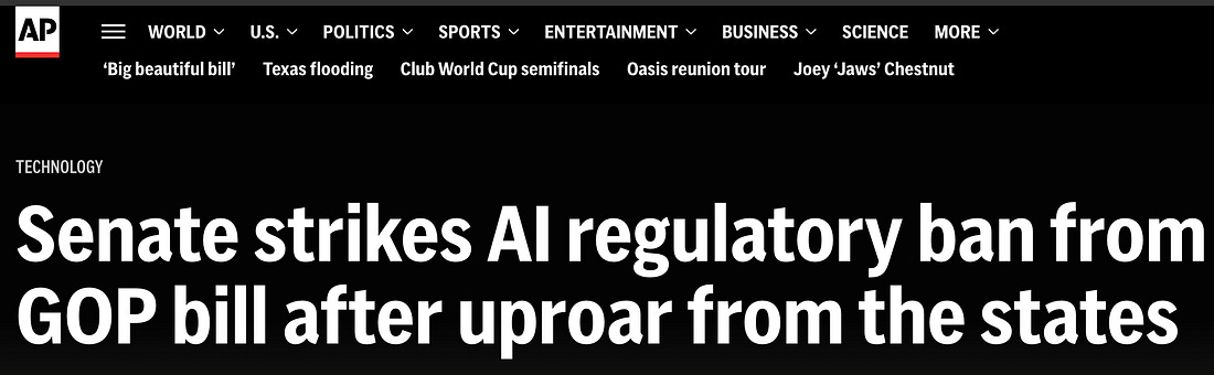 While some may find Adam’s arguments flawed, he raises some good points. In security and compliance, we often use the phrase “high water mark” to meet the most rigorous compliance requirements upfront. Many tech and AI organizations will inevitably be forced to meet the most stringent U.S. (and global) AI regulatory requirements, such as those from NY and CA, regardless of what the other states say or do, due to the reality that it is too costly and impractical to have countless different products and services for each state. Adam argued that the irony is that much of the animosity around the moratorium was directed at “Big Tech.” Still, those big firms are the ones who will be able to navigate the costly and confusing patchwork AI regulatory model where they are headed, with smaller firms struggling to manage the cost and complexity of compliance. I have seen this play out in areas such as FedRAMP and the DoD SRG related to Cloud and ATO’s in the public sector, as larger firms can afford the time and cost to meet the compliance requirements, and afford to enter these markets, essentially locking out smaller firms with less resources, even if they have innovative products and services the industry could benefit from. To his last point about impacting a pro-innovation and pro-investment policy approach to compete with China for AI leadership, one of the best ways to mitigate what is happening would be for the Federal government to take the lead with a coherent, cohesive approach to AI regulation, mitigating the states’ need to step in. That said, of course, some states, such as CA/NY, can and will impose their regulatory requirements, but this would at least provide a uniform Federal pathway for industry and also allow companies to avoid some states if needed while still driving the nation forward from a competitive and innovative perspective. However, watching how we have failed to do something similar around Privacy will leave those of us watching this AI regulatory battle with a sense of déjà vu. Europe’s Biggest Companies Call for a Two-Year Pause on EU’s Landmark AI ActNot to be left out of the conversation, our friends in the EU saw action on AI regulation recently, too. A coalition of Europe’s largest companies asked for a two-year freeze on the implementation of the EU’s AI Act, citing concerns it could impede the EU’s ability to keep pace with China and the U.S. It will be very interesting to see how this plays out, given the EU by its own admission in some ways has set out to be a “regulatory superpower” despite many concerns from national and industry leaders alike who state the heavy handed compliance approach of t he EU is impacting the EU’s ability to compete and also its economic prosperity and national security. And, right on cue, as expected, EU leaders stated “No pause for the EU AI Act Implementation timelines”. The EU government and bureaucracy seem to be committed to this path, regardless of the impact on economics or national security.