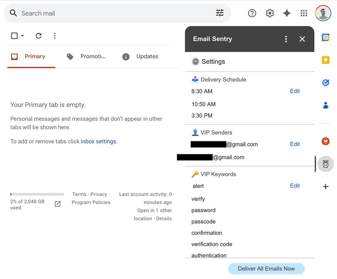 Inbox focus tool, by Ari Klein using Gemini