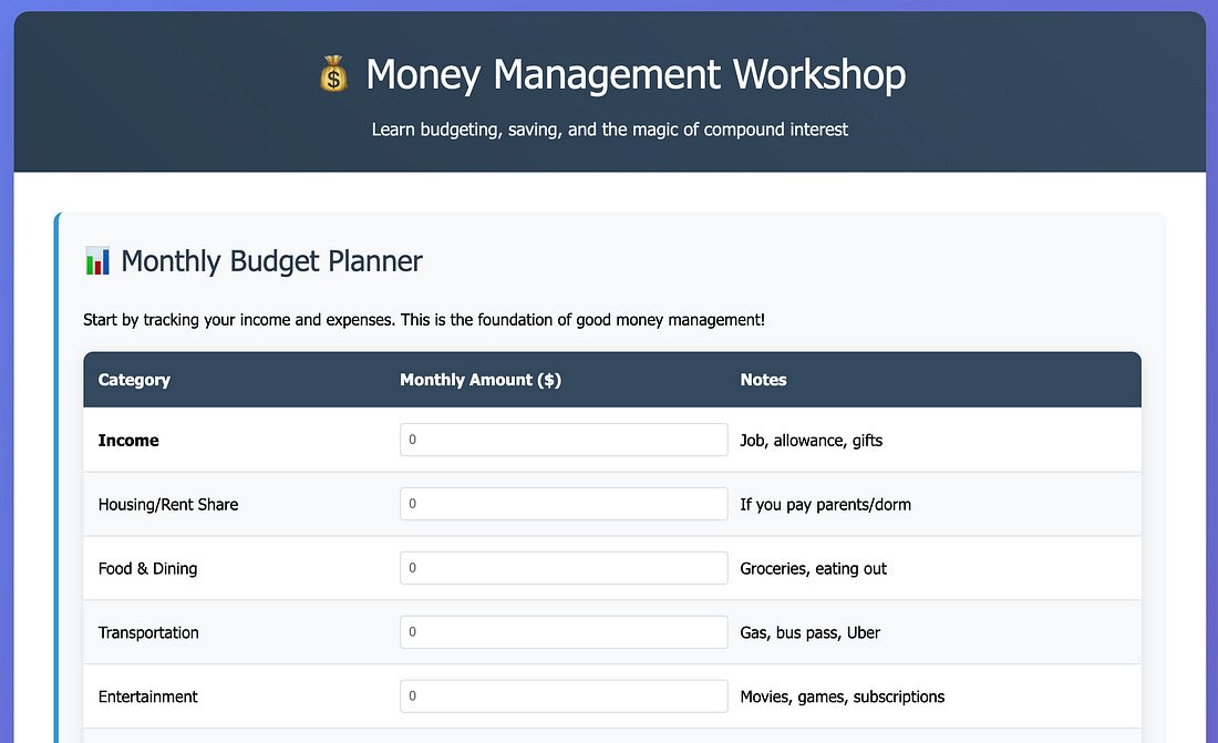 Teach your kids budgeting and savings, by Sanjeev Nair using Claude Code