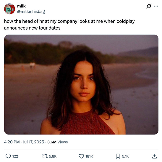 Attention Is the Last Scarce ResourceThe Coldplay Kiss Cam and New Business Models to Monetize AttentionWeekly writing about how technology and people intersect. By day, I’m building Daybreak to partner with early-stage founders. By night, I’m writing Digital Native about market trends and startup opportunities. If you haven’t subscribed, join 70,000+ weekly readers by subscribing here: Attention Is the Last Scarce ResourceWe all know about the Coldplay “kiss cam” scandal that rocked the world last week. The internet, of course, had a field day with memes: But there was an offshoot story that flew under the radar, a story that embodies growth marketing in 2025. After the Astronomer CEO was caught on camera, his daughter began to post on TikTok. Soon, she had over 100K followers and 15M views. This video alone got 3M+ likes: The only problem? The CEO of Astronomer doesn’t have a daughter. Some sleuthing from Roberto Nickson revealed that the CEO only has two sons. Someone had pulled a random woman’s Instagram photos to create a fake persona for a non-existent daughter, then started posting content like crazy. Why? Well, once the “daughter” had amassed an audience, the person behind the profile began to subtly plug a meditation app. You can see here the link in her profile: Eventually, the posts themselves began to shill the app. The entire stunt—the fake profile, the fake videos, the fake backstory of Andy Byron’s daughter—was all an effort to get some downloads on a meditation app. Pretty wild. This captures the state of marketing in 2025: guerrilla marketing. Points for effort, I guess? But also an indication of how low companies will go in their quests for eyeballs and clicks. Of course, this is to be expected: attention is the last scarce resource. Labor, Land, Capital…and Attention?Kyla Scanlon, one of my favorite economic theorists, recently wrote about attention and went on Ezra Klein’s podcast (worth a listen). Scanlon argues that we’ve had traditional economic substrates like land, labor, and capital. Now, increasingly, the new foundational input is attention. This is particularly true online, and we see Silicon Valley put a premium on attention. Scanlon points to Cluely raising a buzzy Series A from Andreessen Horowitz last month. In her words:
