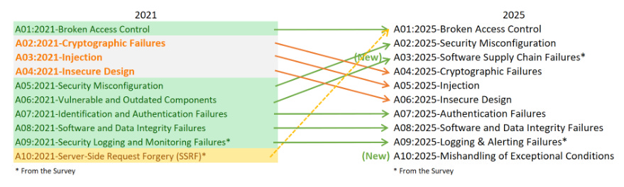 The OWASP Top 10 Gets ModernizedA look at the 2025 update to the OWASP Top 10, the most significant update since 2021If you’ve been in Application Security (AppSec) or cyber more broadly, you’ve inevitably heard of the OWASP Top 10. It’s a mainstay within the AppSec community, and as OWASP itself says, it is: It is a global standard used to raise awareness and educate developers and those in Application Security (AppSec) about the most critical security risks facing web applications. As part of the OWASP Global AppSec Conference in Washington, D.C., in November, the OWASP Top 10 has just received its most significant update since 2021, and I wanted to dive into some of the key updates and takeaways for the community. For those interested, there is also an associated slide deck/presentation from the OWASP D.C. event, which covers the updates to the OWASP Top 10. Interested in sponsoring an issue of Resilient Cyber? This includes reaching over 40,000 subscribers, ranging from Developers, Engineers, Architects, CISO’s/Security Leaders and Business Executives Reach out below! Bottom Line Up FrontI know most folks have short attention spans and want the bottom line up front (BLUF). What are the significant changes? Those can be summarized in the image below from OWASP: Some things remained the same, while other significant changes did occur. On the status quo front, Broken Access Control remains the king of the hill, dominating the top spot in both the 2021 and 2025 versions of the Top 10. OWASP states that 3.73% of applications tested had one or more Common Weaknesses and Enumerations (CWEs) in this category. A wilder stat is that OWASP states: