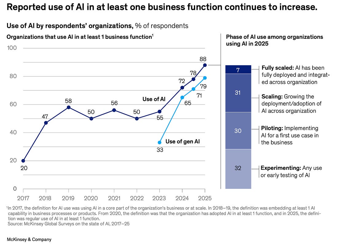 7. Experiential rewards work betterNot one to share too much academic research in this newsletter (I usually favor things that are closer to the ground and tested in-market), but “When rewards connect to the self: Unlocking customer engagement through experiential rewards” from researchers at Michigan State, San Diego State, and the University of Alabama stood out when I saw it in the Science Says newsletter. Across six studies (four in the lab, two in the field), they found that even small experiential rewards consistently drive more engagement than material ones. That includes more word of mouth, stronger loyalty, more redemptions, and more spending both before and after the reward. People see experiences as part of their identity, not just a transaction. That makes them feel closer to your brand. Experiences feel more personal, and they lead to better results. The value of a reward lies more in the connection it generates than in its size. 8. AI adoption is mainstream, but true transformation hasn’t really started.McKinsey’s State of AI in 2025 report shows adoption is broad, but depth is lacking. 88% of companies say they use AI, but only a third have scaled AI agents, mostly in tech, media, healthcare, and insurance. Travel ranks lower on the spectrum. Most companies remain in experimentation and pilot mode. The high performers (top 6%) approach it differently: