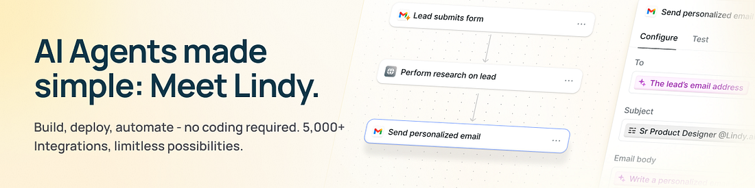 Today’s edition is supported by Lindy. If ChatGPT could actually do the work, not just talk about it, you’d have Lindy. Just describe what you need in plain English. Lindy builds the agent and gets it done. → “Create a booking platform for my business” → “Handle inbound leads and follow-ups” → “Send weekly performance recaps to my team.” Save hours. Automate tasks. Scale your business. 1 It is more robust than the weak “MIT” Nanda study earlier this year. I invite the authors of that t challenge my assertion. |