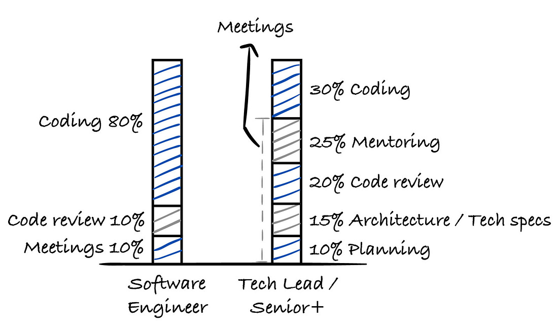 The biggest differentiators between them is the focus on people versus technical direction. With roles such as Team Lead and Engineering Manager, you are also directly managing your people, and with roles such as Tech Lead or Architect, you don’t have direct reports, therefore you need to influence others without authority. To be fair, with this article, I am particularly focusing on the Lead roles, which are close to what a Senior Software Engineer might take as a next step. That’s the reason I am leaving out the roles such as Director, VP, CTO, or similar, as those roles are the next steps after already being in a Lead role. Now, let’s start with the first category: Tech Lead. This is usually where engineers get their first experience leading a project and owning its outcomes. Tech LeadThe Tech Lead role is typically the first leadership role that Software Engineers move into. When you become a Senior Software Engineer, you normally start owning projects, and that’s where you already start doing some of the responsibilities of a Tech Lead. A Tech Lead is someone who is responsible for the technical implementation of the specific project. They create a technical specification, collaborate with a product manager on the planning of the project, and manage expectations of the project with the stakeholders. Normally, they also estimate the effort that is going to be needed and provide the specific timeline, and also what the specific iterations of deliverables are going to be. Tech Leads are the go-to people for the tech side of the project, and they are responsible for ensuring everything goes well. It’s a totally different role than the role of a Software Engineer, you do a lot less coding, and you act as a multiplier for others. Unblocking and helping others to progress and move forward with their tasks is what becomes very important. Some companies may use the Tech Lead as a direct title, but mostly the Tech Lead role is used to define the role of a certain individual. For me, personally, I am an advocate of doing a Tech Lead rotation in the engineering team, I believe it’s a good way to share knowledge across the team and give an opportunity to people to grow. Titles that are mostly associated with this role: