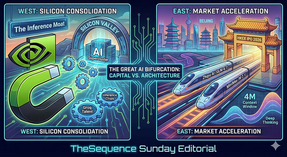Was this email forwarded to you? Sign up here The Sequence Radar #779: The Inference Wars and China’s AI IPO RaceNVIDIA's large deal with Groq and new releases by Z.ai and Minimax.Next Week in The Sequence:Our knowledge series continues diving into synthetic data generation. This time we focus on synthetic image generation. In the AI of the Week section we are going to cover the newly released GLM 4.7. In the opinion section, we will discuss three non-trivial AI areas that I am excited about fro 2026. Subscribe and don’t miss out:📝 Editorial: The Inference Wars and China’s AI IPO RaceThis week, the AI industry witnessed a fascinating divergence in strategy between East and West, marked by a massive talent consolidation in Silicon Valley and a maturing public market push in Beijing. While Nvidia solidified its iron grip on inference hardware through a strategic “acqui-hire” of Groq’s leadership, China’s leading model labs—Zhipu AI and MiniMax—simultaneously released frontier-class models and cleared major regulatory hurdles for Hong Kong IPOs. The holiday headlines were dominated by Nvidia’s decisive move to license Groq’s LPU (Language Processing Unit) technology and hire its core leadership, including founder Jonathan Ross. While rumors initially pegged this as a $20 billion acquisition, the reality is more nuanced and perhaps more ruthless: a non-exclusive licensing deal that decapitates a key competitor by absorbing its visionary talent while leaving the entity independent. This follows the “Microsoft-Inflection” playbook—avoiding antitrust gridlock while securing critical IP. For Nvidia, this isn’t just about removing a rival; it’s about acknowledging that the next phase of the AI cycle is inference. By integrating Groq’s ultra-low-latency architecture, Nvidia is future-proofing its dominance against a rising tide of specialized inference chips. While US hardware consolidates, Chinese model labs are delivering shocking performance per dollar. Zhipu AI led the charge on December 22 with the release of GLM 4.7, a model that directly challenges the Western “reasoning” class exemplified by o1 and DeepThink. By introducing “Deep Thinking” capabilities, GLM 4.7 demonstrates state-of-the-art performance in complex coding tasks, effectively positioning Zhipu as the “OpenAI of China” with a robust full-stack ecosystem. Simultaneously, MiniMax took a divergent architectural path with the release of M 2.1. Moving away from standard Transformers, this new model utilizes a linear attention mechanism combined with a Mixture-of-Experts (MoE) design. The result is a massive 4-million-token context window that offers extreme computational efficiency, which MiniMax is aggressively marketing as a “RAG Killer” capable of ingesting entire repositories for a fraction of the cost of traditional vector search pipelines. Perhaps most significantly, both Zhipu AI and MiniMax have reportedly cleared regulatory hurdles to list on the Hong Kong Stock Exchange in early 2026. This signals a new era where foundation model labs move from venture-subsidized research projects to public entities demanding revenue discipline. The “scaling laws” are bifurcating. In the US, scaling is becoming a function of capital concentration—Nvidia absorbing the best hardware minds to build bigger clusters. In China, scaling is becoming architectural and economic—optimizing for massive context and agentic reasoning to viable commercial products ahead of public listings. The race is no longer just about who has the most GPUs, but who can build a sustainable business on top of them. 🔎 AI ResearchGoogle Research 2025: Bolder breakthroughs, bigger impactAI Lab: Google Research Summary: This article outlines Google Research’s 2025 achievements, highlighting the acceleration of the “magic cycle” of research that translates breakthroughs in generative models, quantum computing, and scientific discovery into real-world impact. Key advancements include the high-factuality Gemini 3 model with generative UI, the “Quantum Echoes” algorithm for verifiable quantum advantage, and new AI tools for genomics, neuroscience, and climate resilience. Gemma Scope 2 - Technical PaperAI Lab: Google Summary: This paper introduces Gemma Scope 2, a comprehensive suite of open sparse autoencoders (SAEs) and transcoders trained on all layers of the Gemma 3 model family to advance interpretability research. The release includes novel multi-layer architectures, such as crosscoders and cross-layer transcoders, designed to capture complex circuit-level interactions and behaviors that span across multiple transformer blocks. SAM Audio: Segment Anything in AudioAI Lab: Meta Superintelligence Labs Summary: This paper presents SAM AUDIO, a foundation model that unifies audio separation by allowing users to prompt with text descriptions, visual masks, or temporal spans within a single flow-matching diffusion framework. The model achieves state-of-the-art performance across diverse domains like speech, music, and sound effects, and introduces a new benchmark, SAM AUDIO-BENCH, which includes human-labeled multimodal prompts for more realistic evaluation. INTELLECT-3: Technical ReportAI Lab: Prime Intellect Summary: This report introduces INTELLECT-3, a 106-billion parameter Mixture-of-Experts model trained via a new scalable reinforcement learning framework called prime-rl, which supports asynchronous off-policy training and continuous batching. The model outperforms similar-sized open-source models on reasoning, math, and coding benchmarks, and the authors release the full training stack, including the model weights, the RL framework, and the environment library, to democratize large-scale agentic training. Bolmo: Byteifying the Next Generation of Language ModelsAI Lab: Allen Institute for AI (Ai2), University of Cambridge, University of Washington, University of Edinburgh Summary: This paper introduc