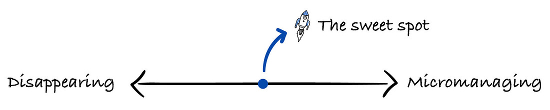 This tension is real, and it often pushes leaders into two unhelpful extremes: 1. Micromanaging to stay “in control”: You review every decision, insert yourself into every detail, and end up slowing your team down. 2. Disappearing to “let them lead”: You step back too far, thinking you’re empowering them, but risk becoming invisible or disconnected. Neither extreme works.