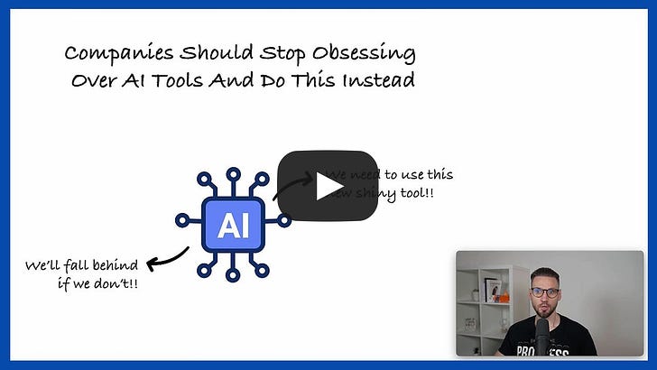 Your answers will shape how you empower → and how you grow as a leader. Last WordsSpecial thanks to Djordje for sharing his insights on this very important topic with us! Make sure to check him out on LinkedIn and also check out his newsletter The Chronicles of a High-EQ Leader. We are not over yet! Companies Should Stop Obsessing Over AI Tools And Do This InsteadCheck out my latest video. The topic of the latest video is something that has been on my mind for quite a while. I am seeing many companies obsessing over shiny AI tools, but they are forgetting that there are a LOT more important things to take care of. New video every Sunday. Subscribe to not miss it here: Liked this article? Make sure to 💙 click the like button. Feedback or addition? Make sure to 💬 comment. Know someone that would find this helpful? Make sure to 🔁 share this post. Whenever you are ready, here is how I can help you further