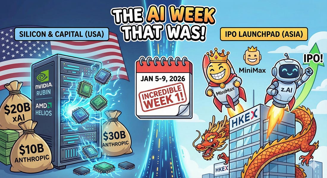 Was this email forwarded to you? Sign up here The Sequence Radar #787: Rubin, Raises, and Returns: 2026 Starts FastIncredible first week of the year.Next Week in The Sequence:Our series about synthetic data generation continues with a quick exploration of the top frameworks in the space( you cant miss that). The AI of the week discusses MIT’s crazy paper about recurvise language models that everyone is talking about. The opinion section will discuss how AI evaluations need to move from static to dynamic based on environments. Subscribe and don’t miss out:📝 Editorial: Rubin, Raises, and Returns: 2026 Starts FastThe first full week of 2026 has been incredibly active, marked by a density of significant developments that sets a high bar for the rest of the year. From Las Vegas to Hong Kong, we saw a simultaneous rollout of critical infrastructure and financial milestones. The news cycle was dominated by major hardware reveals at CES, substantial capital injections for US labs, and the first public market tests for China’s AI startups. Rather than signaling a shift in direction, the events of this week underscore the sheer velocity and scale at which the ecosystem is currently operating. Here is the signal in the noise. 1. The Silicon Wars: From Chips to “AI Factories”At CES 2026, the pretense that the GPU is a standalone component finally ended. NVIDIA unveiled the Rubin platform, and the headline isn’t the chip itself, but the architecture. Jensen Huang’s team introduced the Rubin GPU (featuring 288GB of HBM4 memory) paired with the new Vera CPU, designed to function not as discrete units but as a single “AI supercomputer in a rack.” With a claimed 5x jump in inference speed over Blackwell, NVIDIA is pushing the “rack-scale” paradigm (NVL72) as the new unit of compute. AMD, however, refused to play second fiddle. Lisa Su announced the “Helios” platform, a rack-scale answer delivering 3 AI exaflops, alongside the consumer-focused Ryzen AI 400 series (boasting 60 TOPS). While NVIDIA dominates the data center training narrative, AMD’s aggressive push into “yotta-scale” computing and local AI inference signals that the hardware moat is being contested on both the jagged edge of supercomputing and the localized edge of consumer devices. 2. The Capital Cannonball: $30B in 48 HoursThe numbers are becoming abstract. xAI confirmed a massive $20 billion Series E on Tuesday, fueling its “Colossus” cluster ambitions. Not to be outdone, Anthropic is reportedly closing a $10 billion round at a staggering $350 billion valuation—a figure that suggests the market now views them not just as a model builder, but as a foundational utility for the global economy. The timing is not coincidental. As training costs for GPT-6/Claude-5 class models approach the $10B mark, the table stakes for staying in the frontier model race have effectively priced out everyone but the hyper-scalers and the sovereign-backed entities. Anthropic’s new partnership with Allianz (announced Friday) further cements this transition from research lab to enterprise infrastructure. 3. The Dragon Rises: The Hong Kong Litmus TestWhile the US fights the private capital war, China’s AI giants are testing the public markets. This week marked a historic pivot with the IPOs of MiniMax and z.AI (Zhipu AI) in Hong Kong. The results were electrifying. z.AI, the creator of the GLM models, debuted Thursday with a solid performance, raising ~$558M and proving that open-weight model strategies can find public market validation. But MiniMax stole the show on Friday. The “Chinese Character.AI” saw its stock nearly double on day one, rocketing to a valuation over $13 billion. This is a critical signal. For years, the question has been whether China’s application-layer AI companies could exit. MiniMax’s explosive debut answers that with a resounding “yes,” suggesting that while US firms focus on AGI infrastructure, Chinese firms are finding faster routes to monetization and liquidity in consumer apps. The VerdictWe are witnessing a bifurcation of the AI ecosystem. In the West, the focus is on capital-intensive “heavy industry”—building the god-like infrastructure required for AGI. In the East, the focus has shifted rapidly to public liquidity and consumer application dominance. 2026 has barely started, and the rules of the game are starting to change. 🔎 AI ResearchRECURSIVE LANGUAGE MODELS, MIT CSAIL The authors propose Recursive Language Models (RLMs), a general inference strategy that treats long prompts as an external environment, enabling an LLM to programmatically manage and recursively process context through a Python REPL. This approach allows models to handle inputs vastly exceeding their native context windows and dramatically outperforms existing long-context methods on diverse tasks while keeping costs comparable. WebGym: Scaling Training Environments for Visual Web Agents with Realistic Tasks, Microsoft, UIUC, CMU WebGym is introduced as a large-scale training environment for visual web agents, offering nearly 300,000 diverse tasks and a high-speed asynchronous rollout system for efficient reinforcement learning. The study demonstrates that training on this extensive dataset allows a standard vision-language model to significantly outperform proprietary models like GPT-4o on unseen web tasks. Agentic Rubrics as Contextual Verifiers for SWE Agents, Scale AI This paper introduces Agentic Rubrics, a verification method where an expert agent explores a code repository to generate context-specific checklists for grading candidate software patches without requiring code execution. Experiments on SWE-Bench Verified show that this approach yields scalable, interpretable verification signals that outperform traditional execution-free baselines and align closely with ground-truth test results. Token-Level LLM Collaboration via Fusion Route, Meta AI, Carnegie Mellon University, University of C