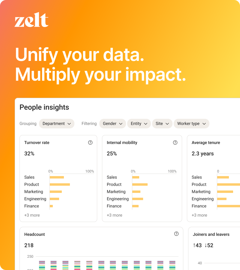 Zelt unifies HR, Payroll, and T&A in one system - giving you the visibility to prove HR’s value.