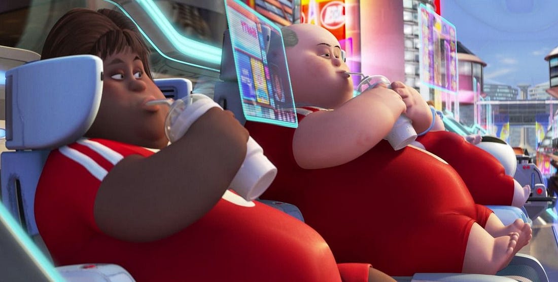 While the folks at Pixar decided to visually represent it like this… … I invite you to re-read the description above and ask yourself how much our lives have been evolving in that direction over the past couple of decades. And no, while it will definitely help, exercising every day on a treadmill would not be an effective antidote to prevent us from slipping further towards that possible future. Are you familiar with the saying “One dollar, one vote”? The idea is simple: every purchase is a political action. When you give your money to someone selling you a product or a service, you’re implicitly supporting them. Who we give our money to, and who we accept money from, is our biggest lever. That’s why I’ll never buy a Tesla, even though I used to like the cars and what I used to believe they stood for. That’s why I’ll never buy a Starlink connection, even though relying on crowded camping WiFi or poor 4G connections for work when traveling in our motorhome is objectively painful and unreliable. That’s why I don’t want to contribute to the adoption of GenAI-related tools, even in their “helpful” incarnations, and miss out on some lucrative contracts. I’m also aware that not everybody is in the privileged situation of being able to say no. Life is hard, keeping your family alive can be challenging at times when massive layoffs have become news that doesn’t make headlines any longer. I’d like to do more to help bring some sanity back into this whole industry. I have been suggesting the idea of setting up some sort of “Luddites in tech”⁴ online meetup with some fellow practitioners, and many found it interesting. I know I’m not going to go anywhere alone, so this is an open invitation to all my readers. If you share a similar level of disappointment with where this industry is going. If you find yourself lost after years of believing you were working on something meaningful and positive. If you’d like to discuss ideas, strategies, and suggestions on how we could come together and do something about it, please hit me up. Just reply to this email. Share your unfiltered thoughts, and let’s take it from there. The worst that can happen is that we’ll meet some new friends on the journey. Help keep this newsletter freeI love writing this newsletter, and I intend to keep it free forever. If you want to support my work, you can engage with me in one of the following ways: