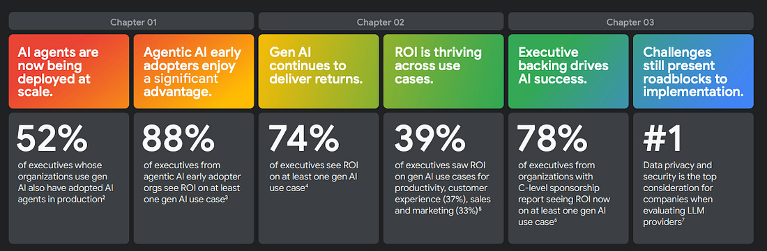 Caleb discusses it from the security perspective, highlighting that if engineers are shifted to building and maintaining an internal tool, that has a cost, and it also distracts them from tackling organizations risks and posture problems. His below quote really summarizes it well: Caleb also highlights common factors driving this behavior, such as “career-driven development” and identity bias, in short, the perceived benefits to individuals who get to build and create, and being associated with making things. Caleb covers the Build vs. Buy paradigm with an AI twist in a really excellent way and this is a great read for those looking to understand what is and will continue to unfold in enterprises as folks are deluded into thinking they can just build something versus needing to buy it, while ignoring the long tail challenges and complexities that come along with doing so. 302 Days from Stealth to the Largest Cyber Series A in HistoryAI SecOps startup 7AI made some big headlines this week when they announced an insanely large $130 million Series A, the largest Series A in cybersecurity history. They discussed evolving from a passion to proof when it comes to the potential for agents to transform security operations (SecOps). They unpack how the math is broken, hiring and throwing more and more bodies at SecOps, along with detection tools and chasing down threats and alerts, leading to fatigue and burnout while risks keep materializing. They also tout processing more than 2.5 million alerts and conducting over 650,000 security investigations and driving. down investigation timelines from hours to minutes while reducing false positives by 95-99% - all impressive metrics. The announcement also claims they have conducted the worlds largest agentic security deployment, with DXC Technology and in only 8 weeks. The founders here boast a strong history of building companies and they’re backed by strong investors so this is definitely one to keep an eye on. The ROI of AI in 2025AI has absolutely dominated the headlines and investments, both within and beyond cyber, accounting for a large portion of the U.S. GDP in 2025. But what is the ROI of AI? That is a question many are wondering and even debating, especially with earlier reports by MIT and others citing how many AI efforts end up failing or falling short of their goals for the organization. That’s why this report from Google was super insightful on the topic. There’s a ton of data in the report so I recommend reading it, but the key insights are summarized below: A few key security findings worth highlighting are involved as well. This includes the fact that SecOps and Cyber are listed among the most relevant cross-industry AI agent use cases: This isn’t too surprising, as I have written quite a bit about the dominant role of AI in SecOps in particular, in prior articles such as: Additionally, Data Privacy and Security continues to be one of the leading blockers to adoption and also a key consideration when evaluating LLM providers for use. This is refreshing, validating the fact that organizations and consumers are thinking about the security implications of AI adoption, while also looking to keep pace and innovate. CMMC - A $6.7B Market by 2033?I recently came across an interesting post from Micah Dickson, who claimed that the Department of War (DOW)’s Cybersecurity Maturity Model Certification (CMMC) program creates a $6.7B industry by 2033. He argues it creates two massive markets, a “total CMMC compliance market”, (e.g. internal staff, software, hardware, consulting, assessments) and a “third-party services market” (consultants and assessments). He broke them down as seen below: THE TWO MARKETS: CMMC is poised to impact 220,000 defense contractors in the defense industrial base (DIB), with tens of thousands of them requiring assessments from 3PAO’s, with only 70~ firms currently authorized to conduct assessments. On one hand these are very interesting metrics in terms of opportunities for those conducting CMMC compliance consulting and assessment services, but I think it also highlights the massive financial burden that will be imposed on the DIB as part of CMMC, and of which many SMB’s will simply not be able to afford to do, and could end up limiting the pool of vendors the DoW gets to work with, and their access to innovating technologies and services as a result. Design Driven Product Security?Over the last several years, we’ve seen phrases such as “Secure-by-Design” transition from longstanding ideas to some looking to put them into action. This notably has been led by folks such as CISA, with their Secure-by-Design initiative and pledge, led during the time by then Director, Jen Easterly. We’re now seeing companies focused on trying to materialize the concept via startups and products, with the latest example being Clover, but others as well, such as Prime Security. A key emphasis is meeting builders where they live and work and where conversations, decisions and potential risks manifest, such as in design docs, Slack threads and tickets among other sources. Clover recently discussed the concept in their blog about coming out of stealth and bringing $36 million in funding to help try and tackle this challenge. Most cyber companies simply can’t scale as fast as the new AI startupsEarlier this year I shared Bessemer’s 2025 State of AI report, in which they discussed the new $100M ARR growth curve for AI startups. This both spoke to what is a new era of venture backed startup growth and what “good” looks like. The problem is, this doesn’t apply to every industry, especially cybersecurity, due to factors that make our industry unique, due to its focus on reducing risk, the emphasis on trust and that even our industry dominant names such as Zscaler and Crowdstrike are far from overnight successes, or in Bessemer’s terminology, “supernovas”. In typical Ross Haleliuk fashion, my friend Ros