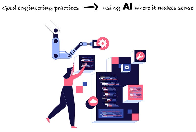 This is the most important message I want to get across today. Don’t neglect the importance of good engineering practices, and also use the tools that make you more effective, but don’t shift the accountability elsewhere. And AI-assisted engineering is the way to go. It means that you focus on good engineering principles while using AI to help you be more productive, where it makes sense. An engineer doing AI-assisted engineering doesn’t blindly trust the decisions and directions that AI makes via prompts and knows that the ultimate accountability is on them and not on AI. Now that we understand that the middle route is the best way to go, let me share my top tips for being successful when doing AI-assisted engineering. My 5 Top Tips For AI-Assisted EngineeringSo, the first one, we already mentioned at least a couple of times in the article :)